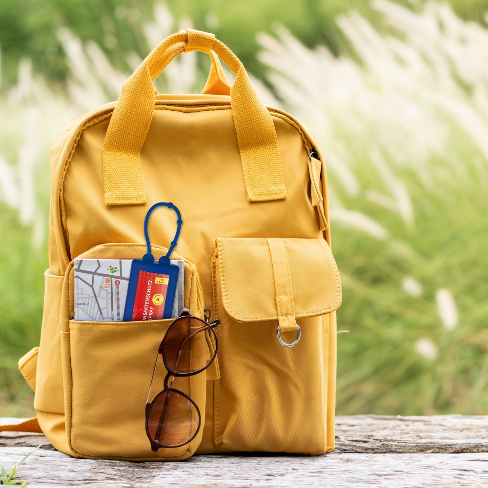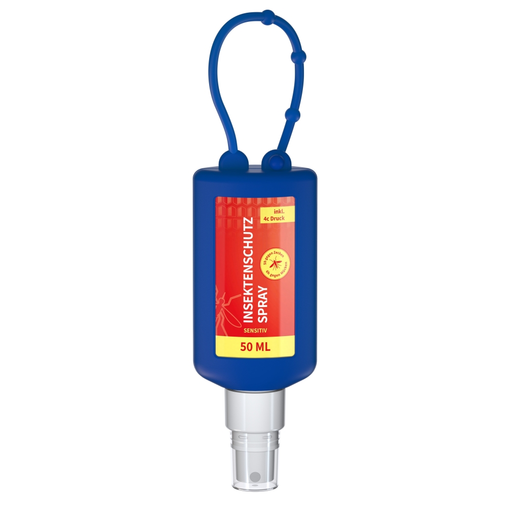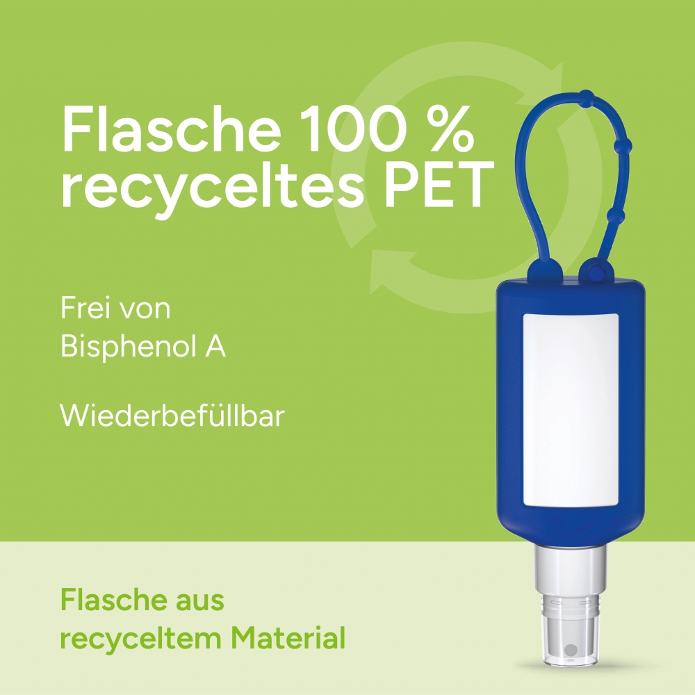 Praktische Kosmetikflasche zum Anhängen! Das Fläschchen mit Silikonhülle ist nicht nur optisch ein echter Hingucker! Raffiniert mit Schlaufe zum Anhängenan den Gürtel, an den Rucksack oder an den Werkzeugkoffer. 50 ml Flasche und Klappdeckel (zufällig ausgerichtet) weiß; Silikonhülle und Schlaufe in Nachfüllbar. Flasche hergestellt aus 100% recyceltem PET, weiß mit leichter R-PET-Färbung. Insektenschutz-Spray Sensitiv. Die speziell für Allergiker entwickelte Rezeptur bietet optimalen Schutz für empfindliche Haut. Es ist geeignet für Kinder ab 2 Jahren und kann von der ganzen Familie ...