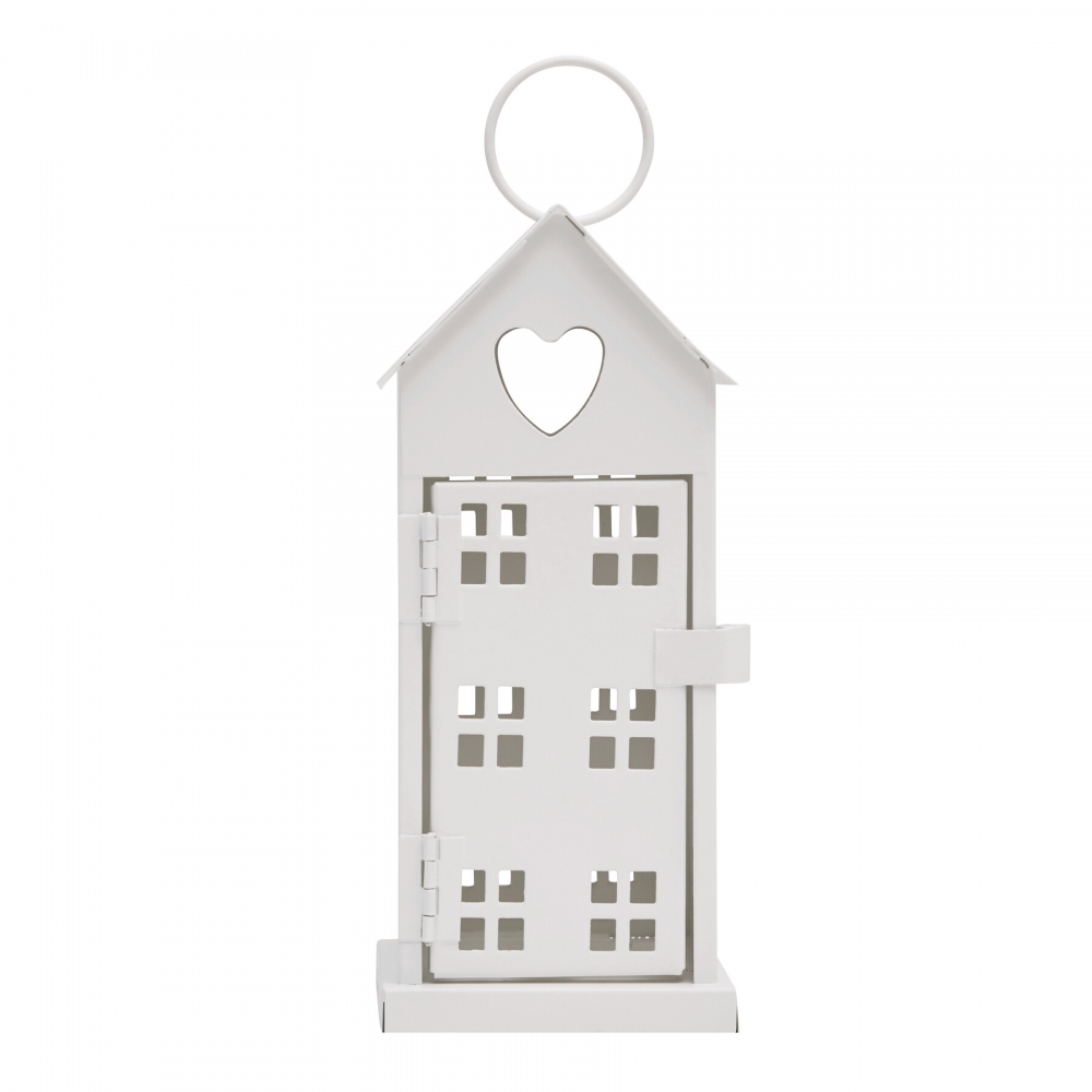 Windlicht SHINY LIGHT: Metall-Häuschen mit je 6 Fenstern auf jeder Seite, Tür zum Öffnen und Befüllen mit Teelicht oder Lichterkette (nicht enthalten), Aufhängeöse am Dach