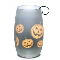 Inhalt: Einzelkartonage mit Windlicht (Glas Motiv Kürbis), Teelichthalter und Teelicht Material: Papi ...