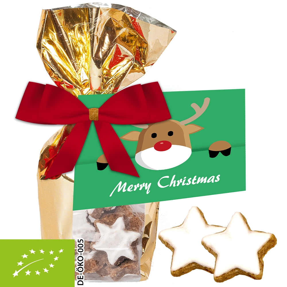 Zimtsterne, ca. 100g, Goldfolienbeutel mit Werbekarte