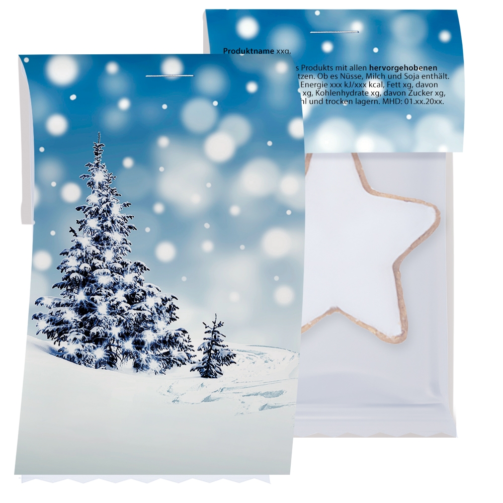 Artikel-Nr: FNM00920Goldfolienbeutel mit Werbekarte. Werbeanbringung als Werbekarte in 4c individuell bedruckbar. Zutaten Zimtsterne: Zucker, Mandel-Haselnuss-Mischung (Mandeln, Haselnüsse), Weizenmehl, brauner Zuckersirup, Palmfett, Feuchthaltemittel: Sorbit, Invertase; Invertzuckersirup, Kartoffelstärke, Glukose-Fruktose-Sirup, Hühnereitrockeneiweiß, Süßmolkenpulver, Karamellzuckersirup, Rapsöl, Zimt, Orangenschalen, Apfelmark, Roggenmehl, Weizenstärke, Gewürze, Glukosesirup, Gelatine, Aprikosenkerne, Emulgatoren: Lecithine, Mono- und Diglyceride von Speisefettsäuren; Geliermittel: Pektin; Säuerungsmittel: Citronensäure; B ...