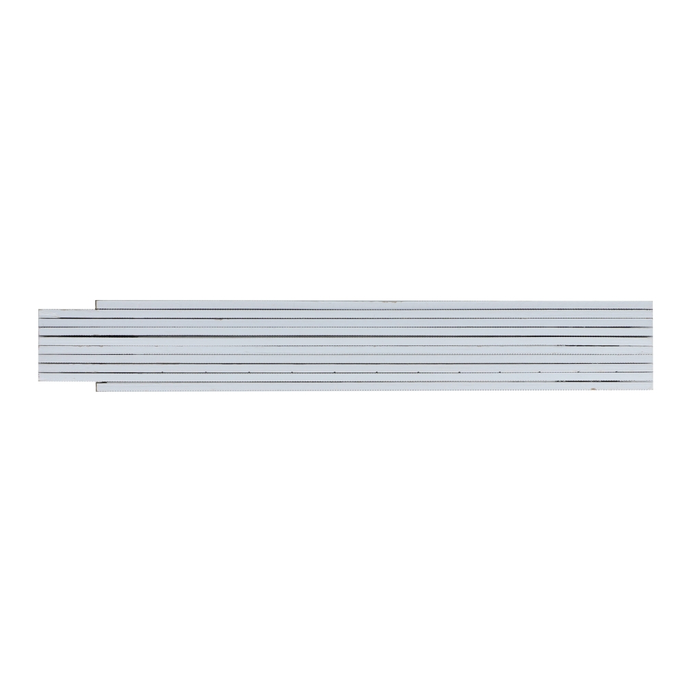 Hochwertiger weißer Gliedermaßstab 3m mit federnden Metallgelenkplatten. Verdeckte Vernietung. Eng aufeinander liegende Glieder ermöglichen auch den digitalen Fotodruck.