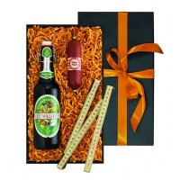 Inhalt: Bier: 5,2 % vol. Salami: Schweinefleisch, jodiertes Speisesalz (Speisesalz, Kaliumjodat), Gewürze (enthält Senf), Dextrose, Glukosesirup, Maltodextrin, natürliche Aromen, Antioxidationsmittel E301, Konservierungsstoff: E250 Maße: 35 x 20 x 9,5 cm Herkunft: Deutschland