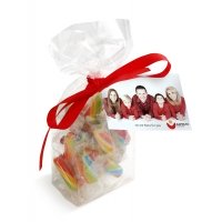 Eine beliebte Süßigkeit vom Weihnachtsmarkt als Werbegeschenk zusammengestellt. Die transparente Tüte enthält 3 einzeln verpackte rot-weiße Zuckerstangen. Platz für den Werbedruck ist auf dem Standardmotiv des Headers oder eine eigene Gestaltung, jeweils ab 250 Stück.