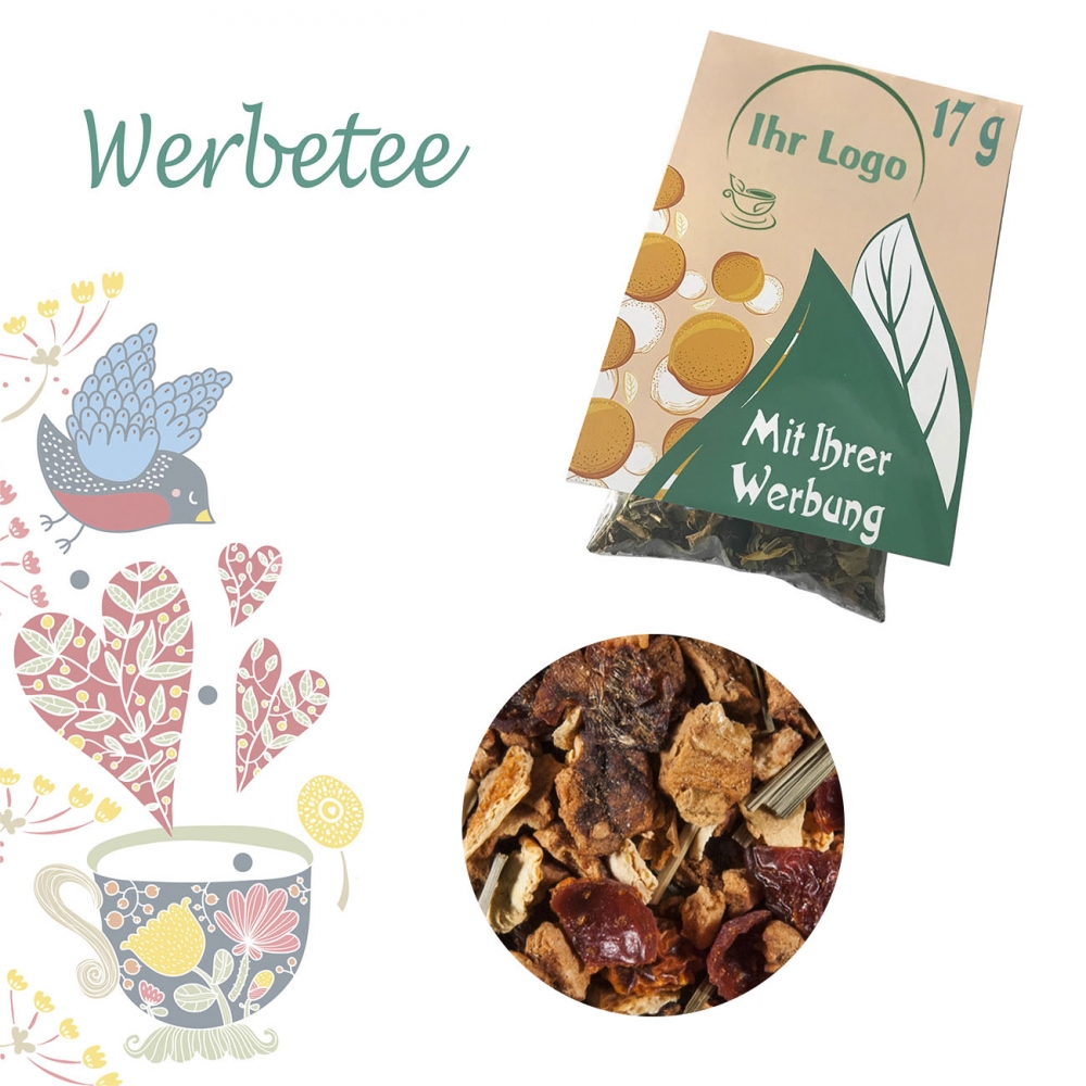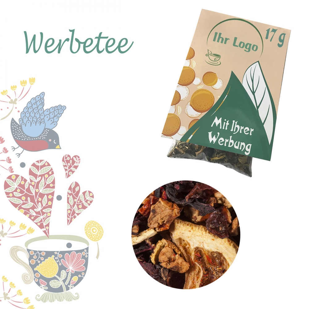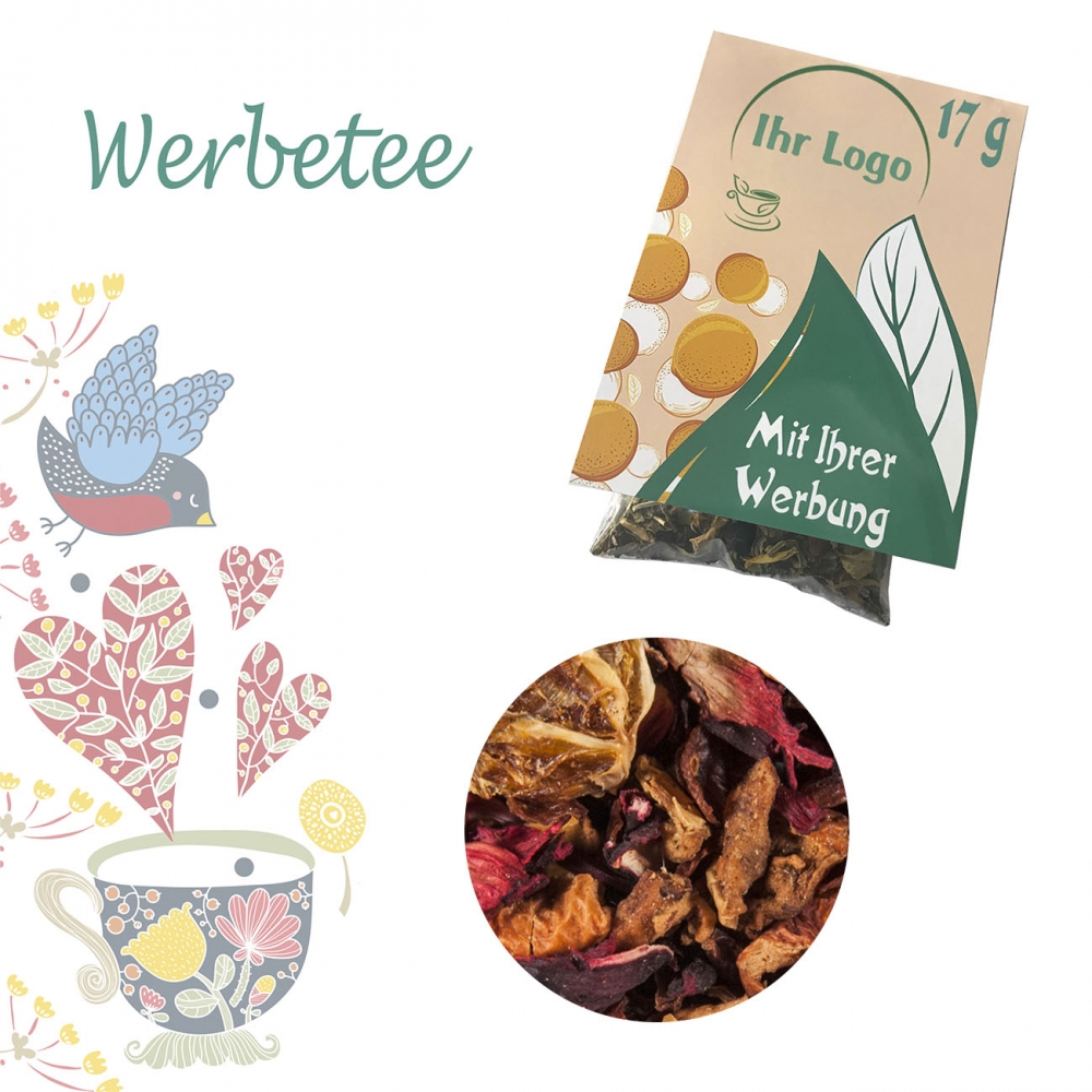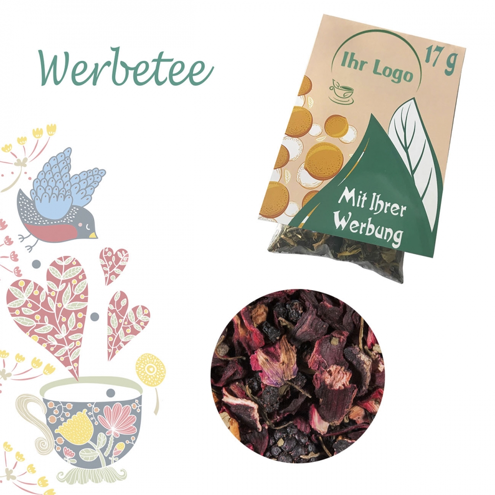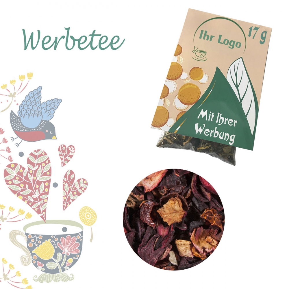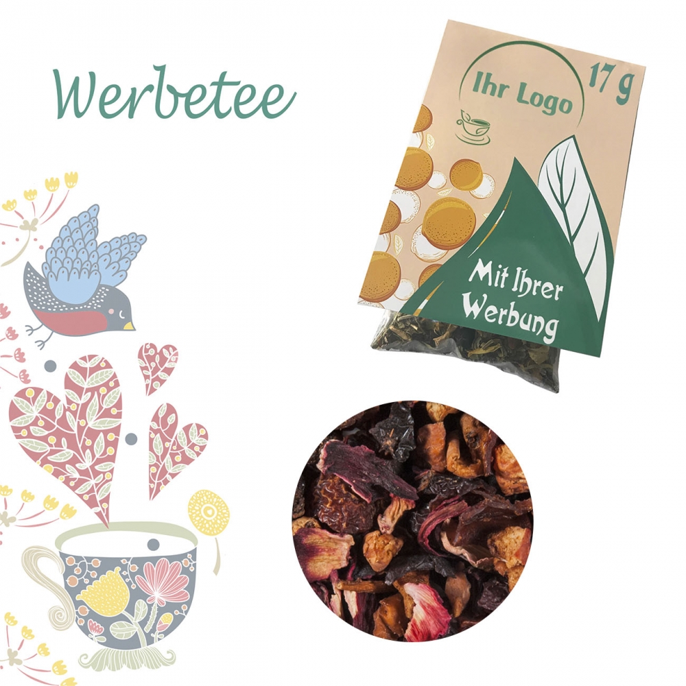 Zutaten: Hibiskusblüten, Apfelstücke, Papayastücke (Papaya, Zucker) (19 %), Korinthen, Holunderbeeren, Schwarze Johannisbeeren, Aromen, Sonnenblumenblüten, Himbeerstücke, Erdbeerstücke, Kornblumenblüten
