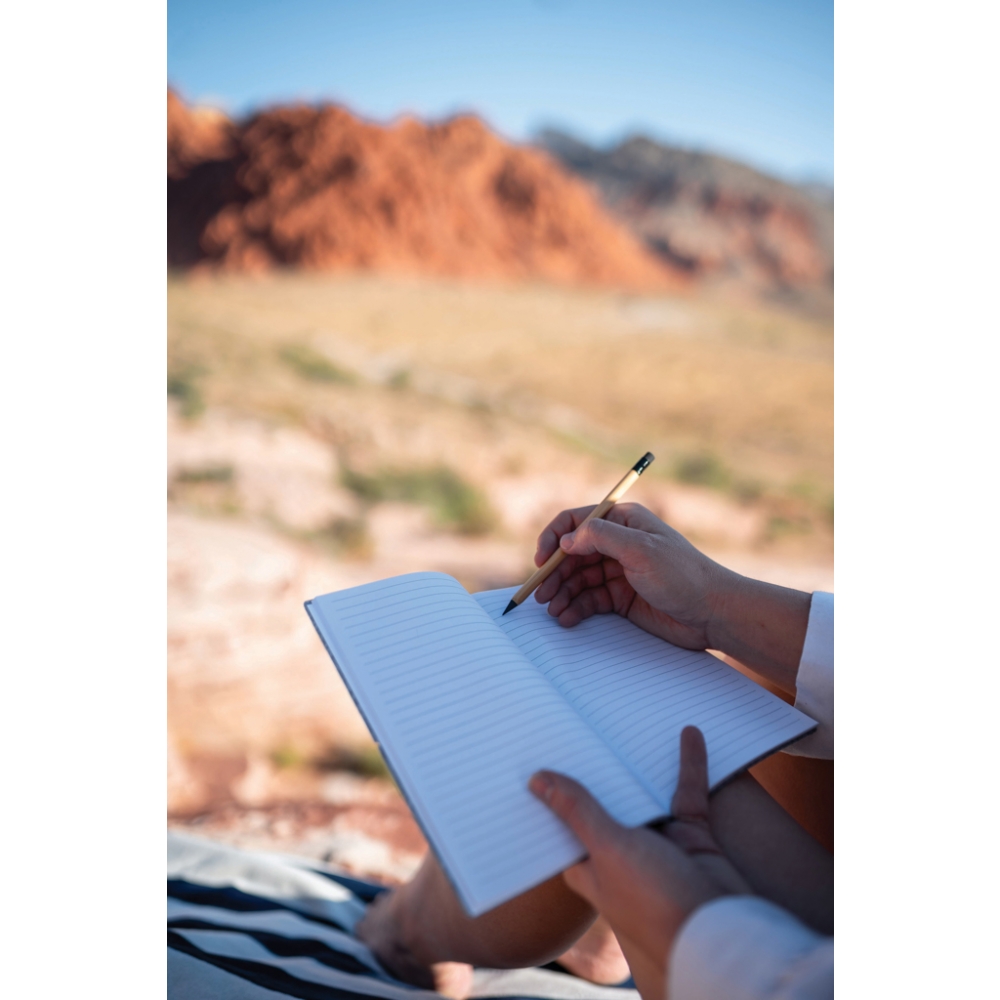 Artikel-Nr: OCBMO6790-40DIN A5 Notizbuch mit Cover aus Bambus. 70 Blatt (140 Seiten) liniertes Kraftpapier. Spiralbindung. Bambus ist ein natürliches Produkt, es kann daher zu leichten Abweichungen in Farbe, Dekor und Maßen kommen.