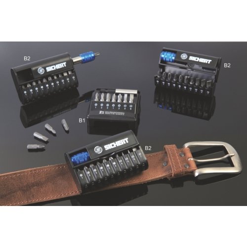 Artikel-Nr: 610B2Profi-Star besteht aus 10 St. Profi-Bits (Rockwell-Härte 58 - 62) und einem magnetischen Bithalter mit Schnellverschluss. Patentierte Bit-Box führt die Bits automatisch nach oben, sobald die linke Gehäusehälfte aufgeklappt wird. Stabile Gürtelhalterung auf der Rückseite.