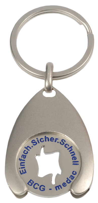 Artikel-Nr: HLA7555R-5-3Chiphalter mit 1€-Chip "Gamma" mit Schlüsselring. Farbkombinationen möglich. Druckkosten pro Position