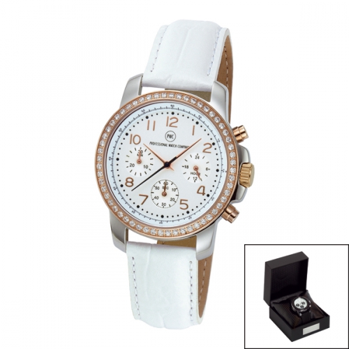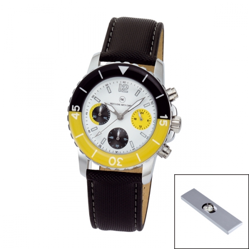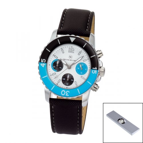 Artikel-Nr: 57322510SI-SWChronograph mit Metallgehäuse glänzend mit hochwertiger IP-Beschichtung, wasserdicht 3 bar, Echtlederband aus feinstem Rindsleder mit Edelstahl-Dornschließe, gehärtetes Mineralglas, Zeiger fluoreszierend, Markenuhrwerk JS20 von Miyota (by CITIZEN) mit 24-Stunden-Anzeige, 5 Jahre Garantie, Metalldose inkl.