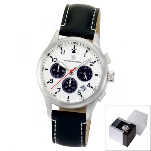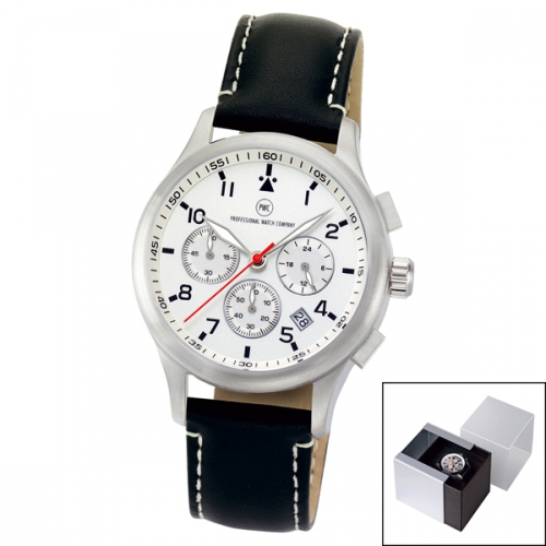 Artikel-Nr: 57321640CH-CHEdelstahl-Chronograph matt gebürstet mit Schraubboden, wasserdicht 5 bar nach DIN 8310, Echtlederarmband aus feinstem Rindsleder mit Edelstahl-Dornschließe, gehärtetes Mineralglas, Zeiger fluoreszierend, Markenuhrwerk mit Datumsfunktion und 24-Stunden-Anzeige, 5 Jahre Garantie, Design-Alubox inkl.