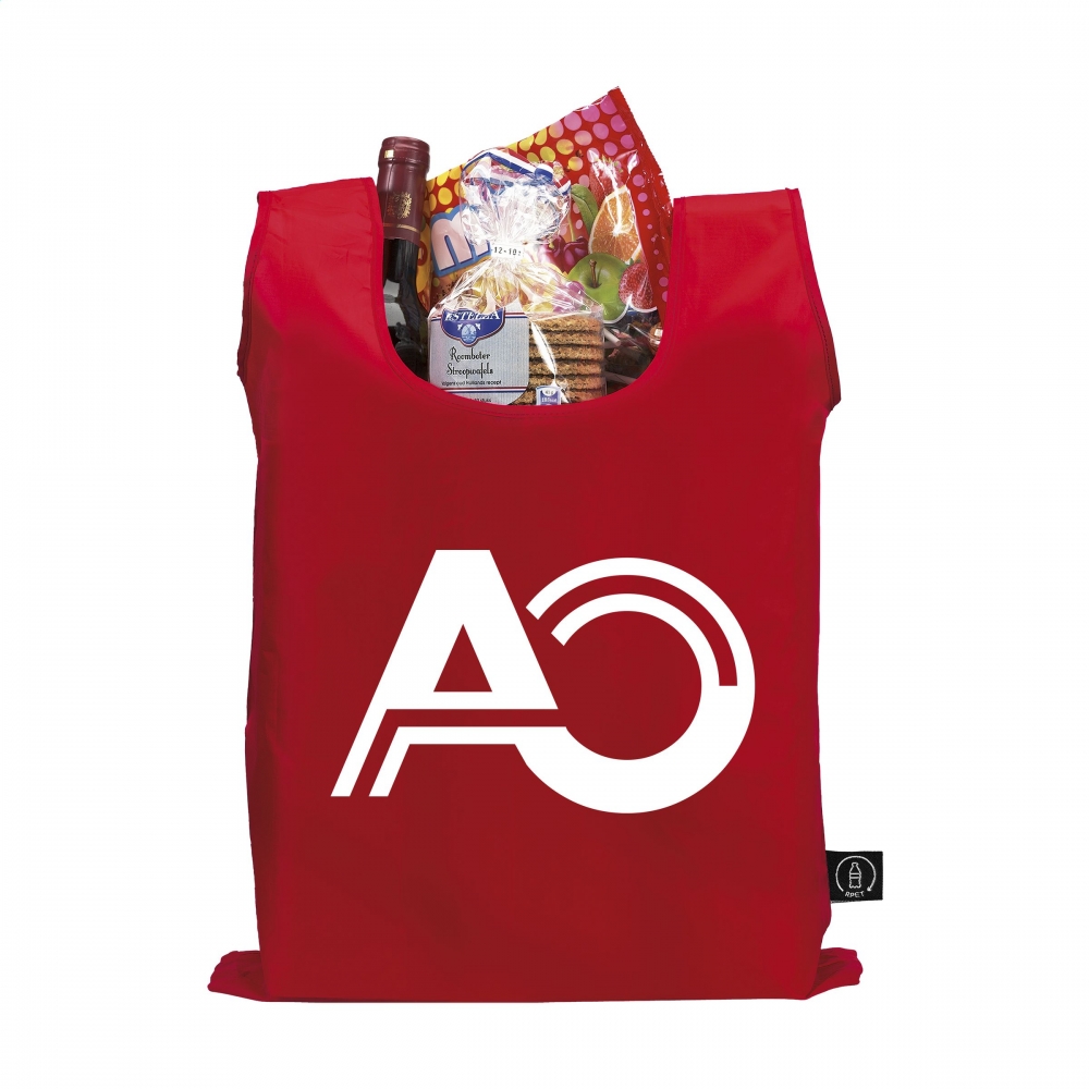 Artikel-Nr: OCBMO9861-85Faltbare Einkaufstasche mit kurzen Tragegriffen und Kordelzug. Der Artikel wird ungefaltet geliefert. 190T RPET.