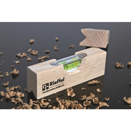 Smartphone-Halterung mit integriertem Fotorahmen zur Frontanwendung. Hergestellt aus natürlichem Holz mit originellem zweifarbigem Finish. Große Werbefläche, einfache Montage und mit dem Siegel Made in Europe.
