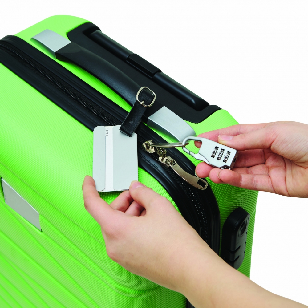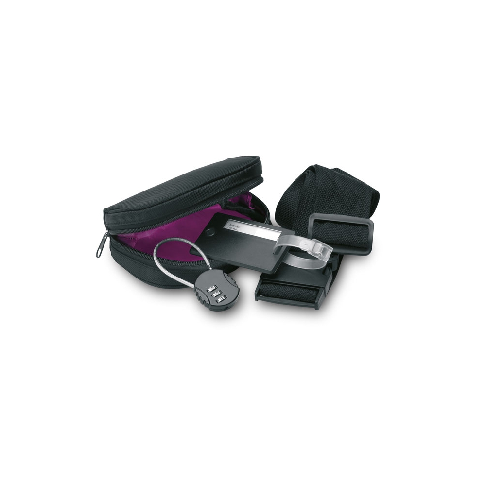 Artikel-Nr: ART99647N0002Reiseset mit PU-Reisedokumentetui mit RFID-Schutz, elastischem Verschluss, Platz für Pass, 4 Kreditkarten, 2 SIM-Karten, weitere Fächer (z. B. Bordkarten). Inkl. Gepäckanhänger mit Schnallenriemen und Kontaktkarte (Name, Telefon, Adresse, E-Mail) auf Englisch.