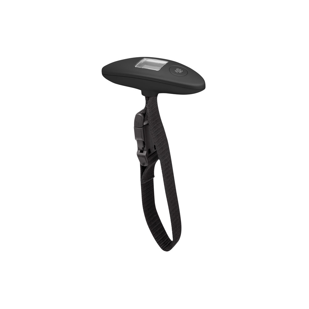 Elektrische Gepäckwaage mit Messung in g, oz, kg und lbs. Integrierte Tarafunktion für genaues Wiegen, helle LCD-Anzeige für Gepäck bis 50kg, bequemer stabiler Handgriff. Ihre Werbung drucken wir auf den Handgriff. Exklusive 2 AAA Batterien (bestellen Sie diese gleich mit, siehe Art. 999400).