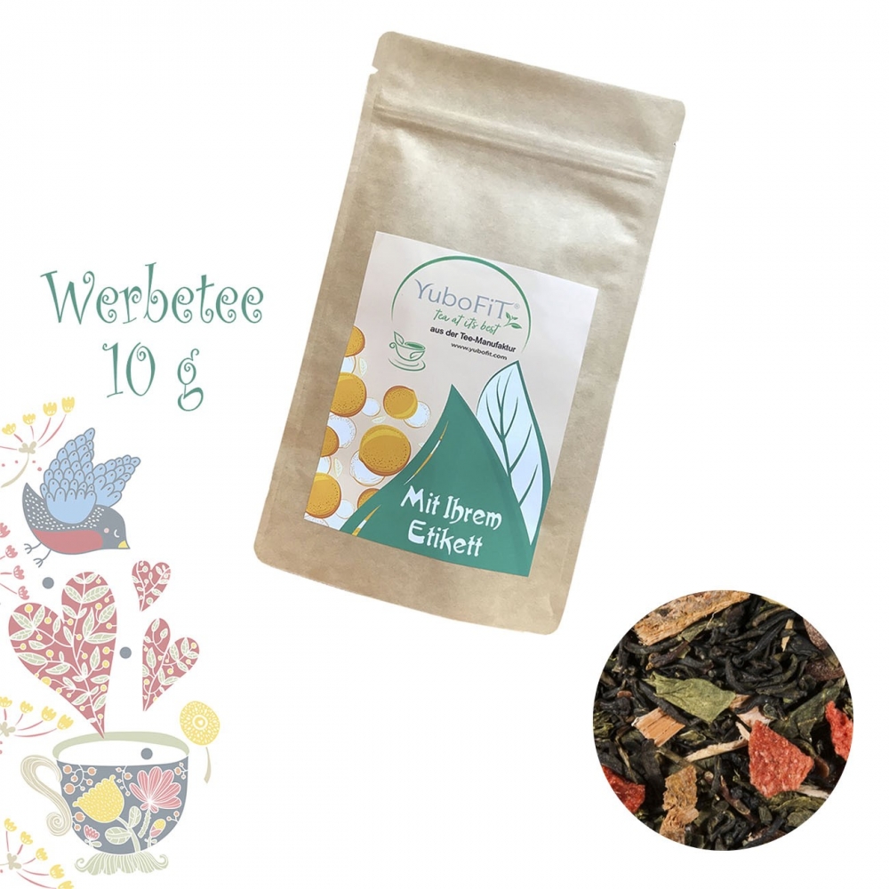 Artikel-Nr: HLSD150114721Tee als Werbegeschenk aus der YuboFiT® Tee Manufaktur. Der leicht herbe Mate hat hier einen wunderbar mandeligen Auftritt mit fruchtiger, zimtiger Süße