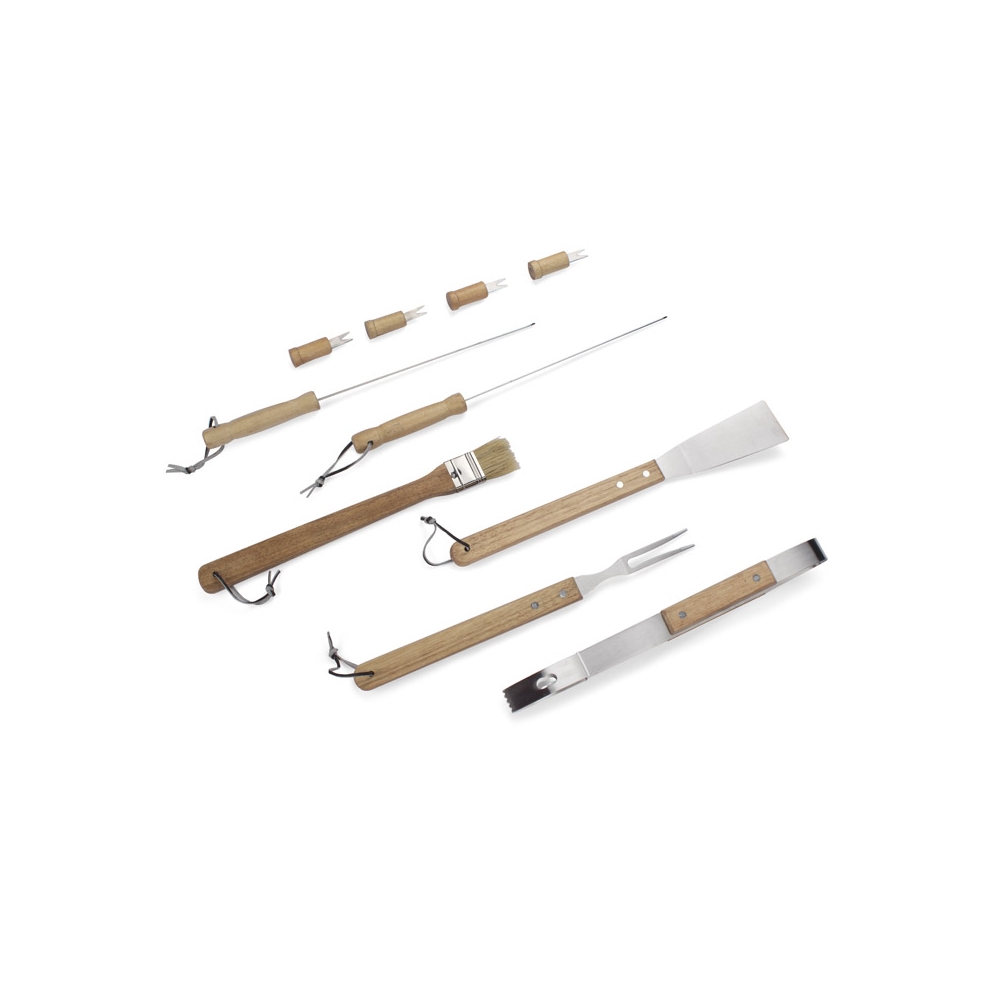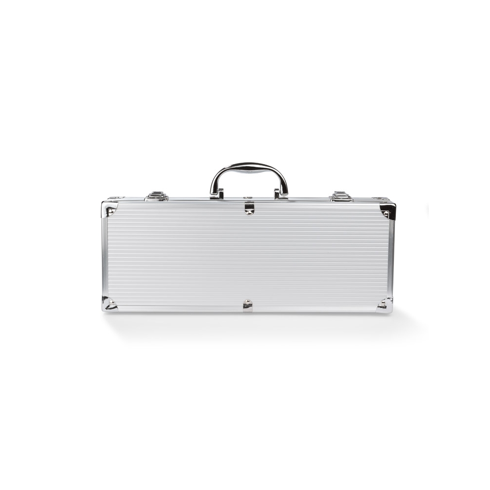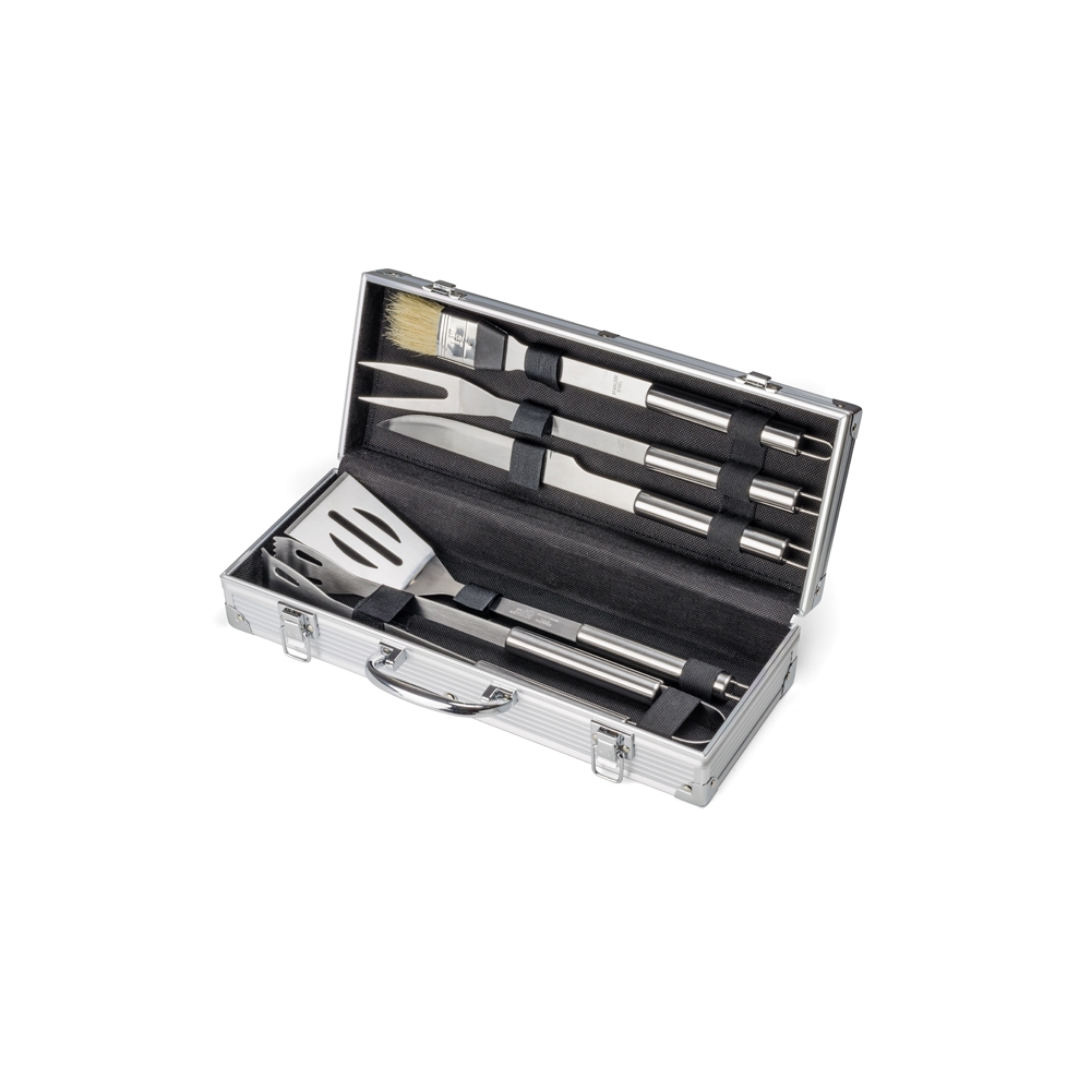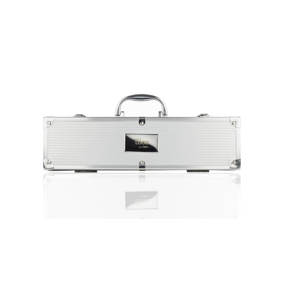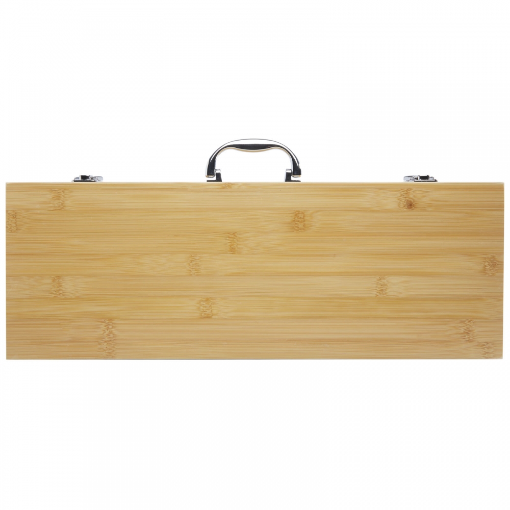 Artikel-Nr: GIV840894011Grillset in einem Aluminiumgehäsue (Bambusoptik) inkl. Bratenheber, Grillgabel und Grillzange.
