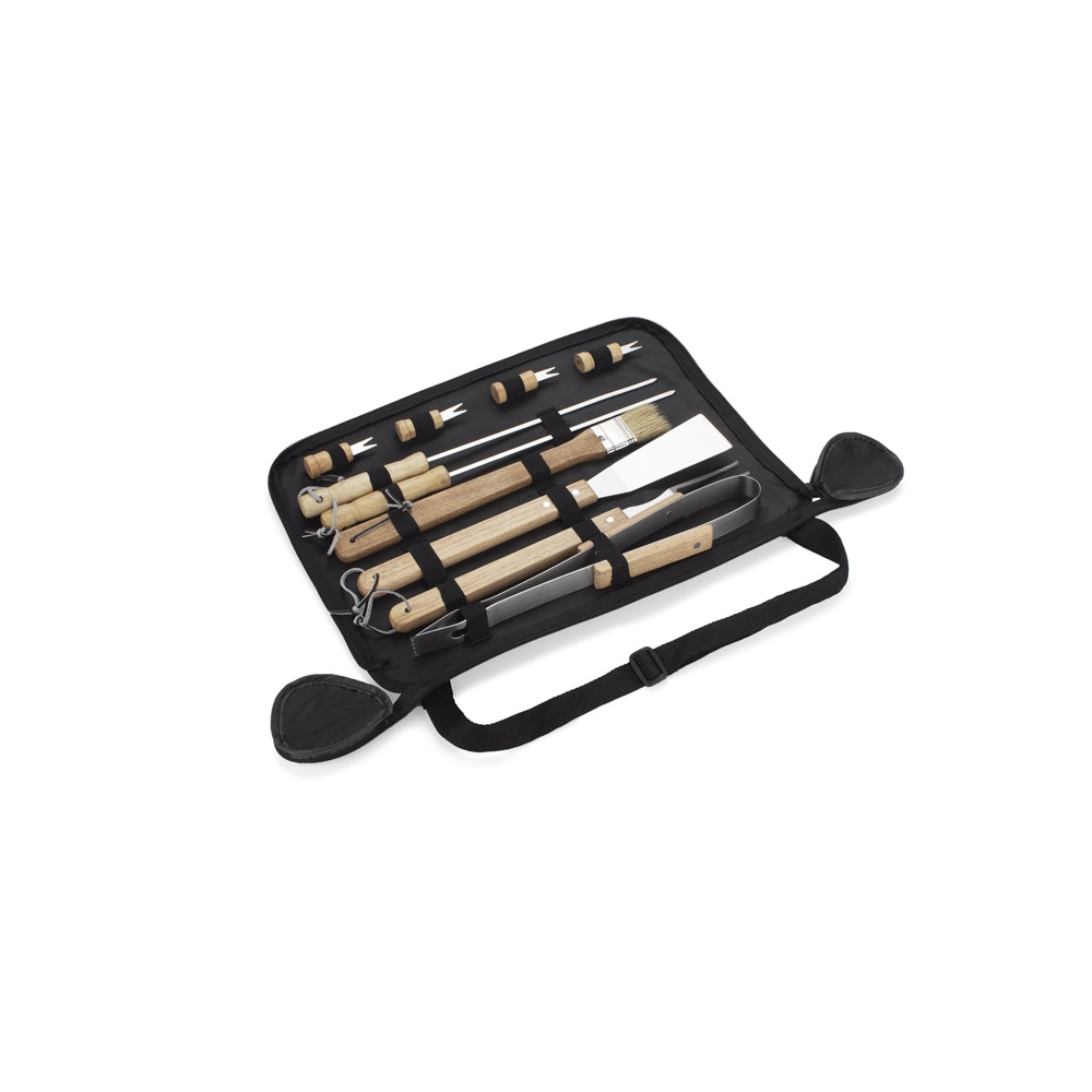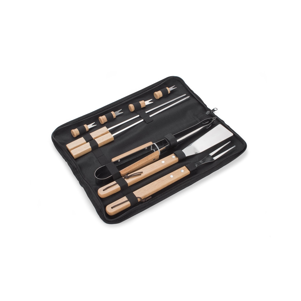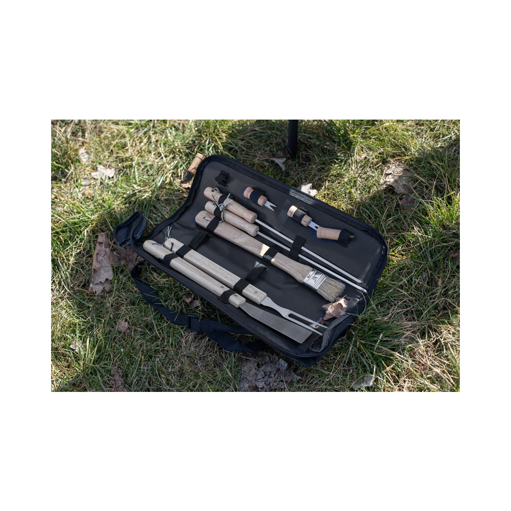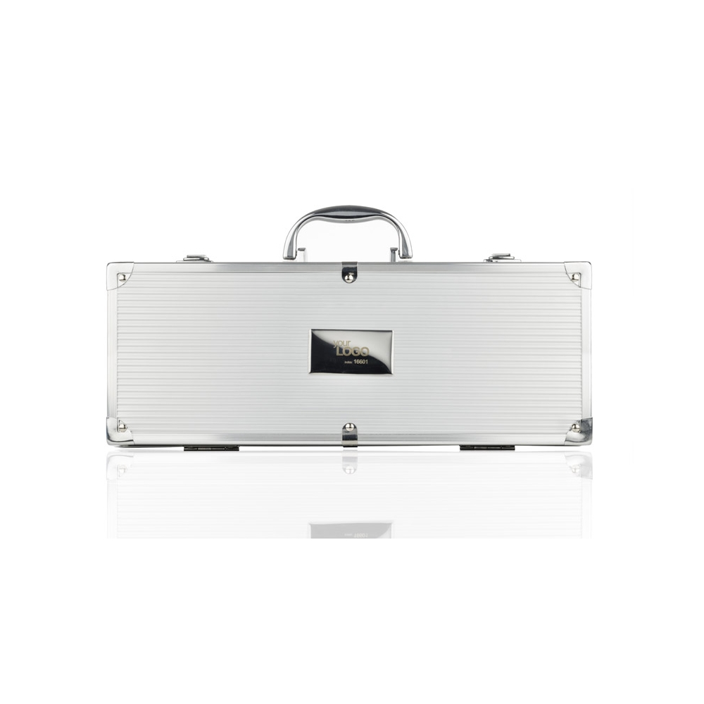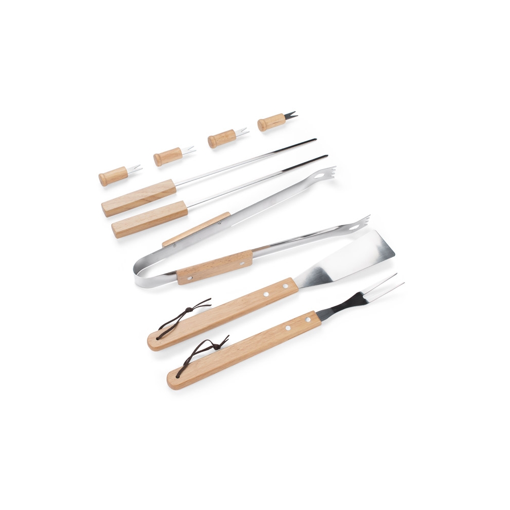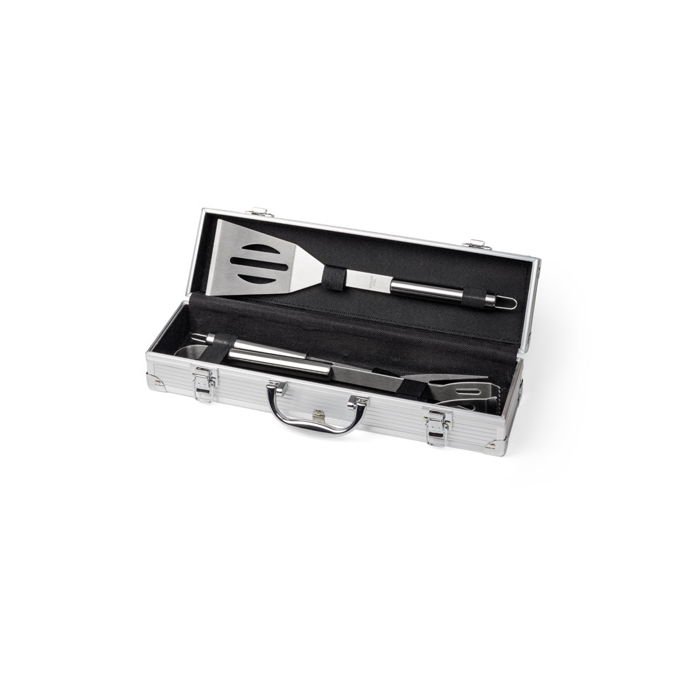 Artikel-Nr: GIV840894011Grillset in einem Aluminiumgehäsue (Bambusoptik) inkl. Bratenheber, Grillgabel und Grillzange.