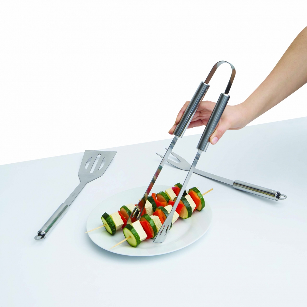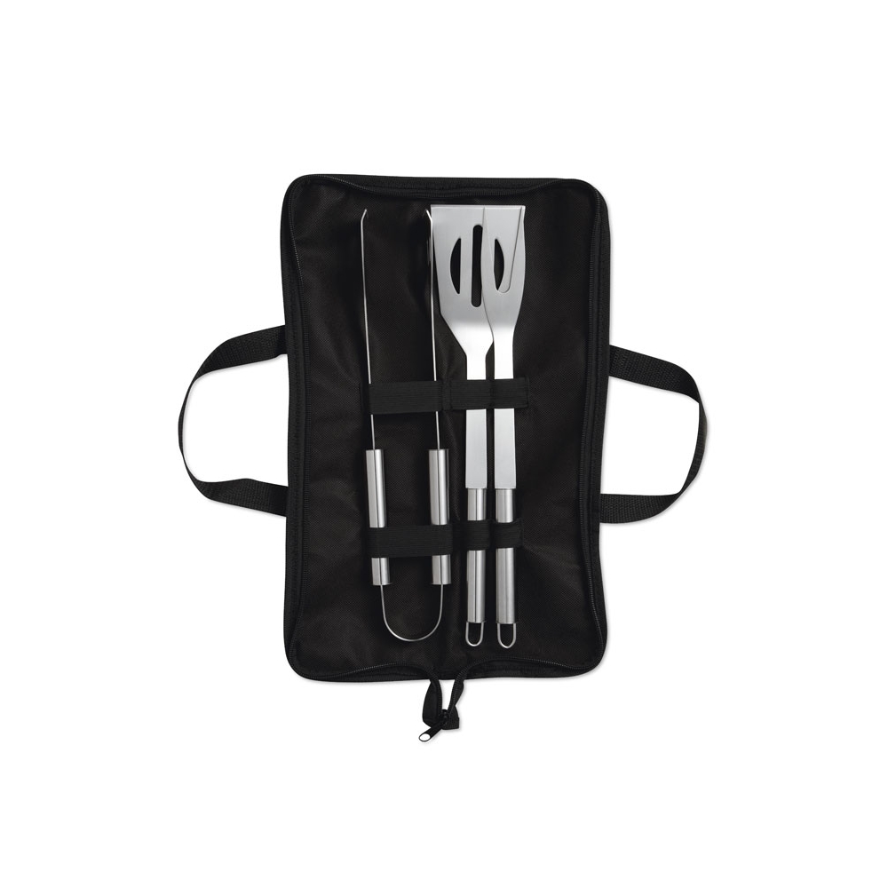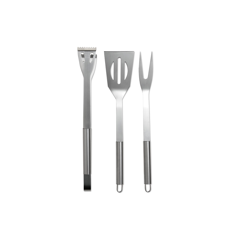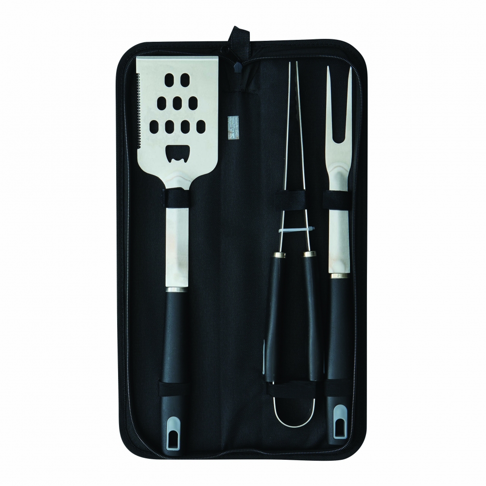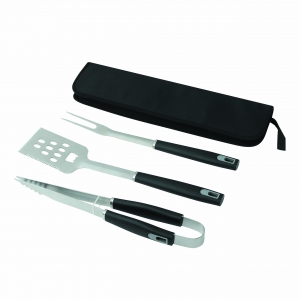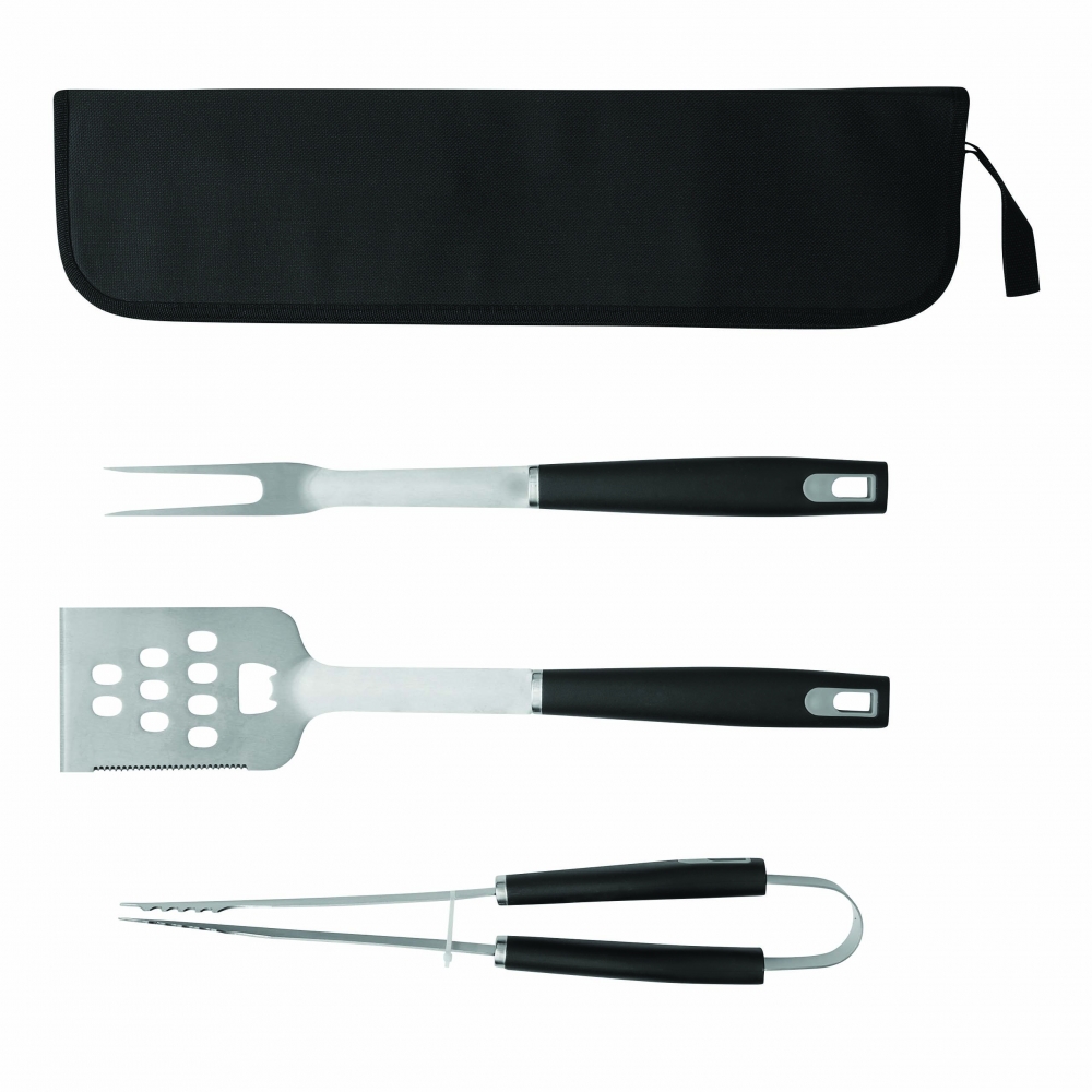 Artikel-Nr: PST93998-103Grill - Set aus Edelstahl 3-teilig bestehend aus einer Grillzange, einer Grillgabel und einem Pfannenwender. Geliefert in einer Tasche aus Non Woven. Tasche: 405 x 120 x 25 mm