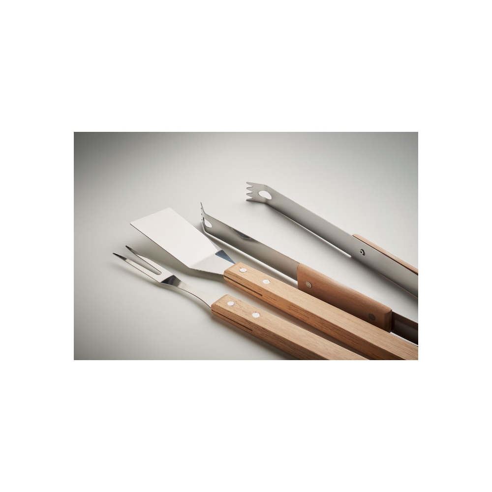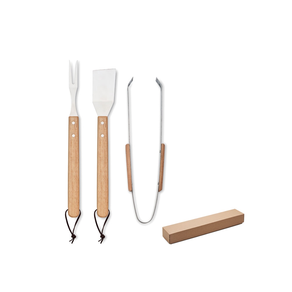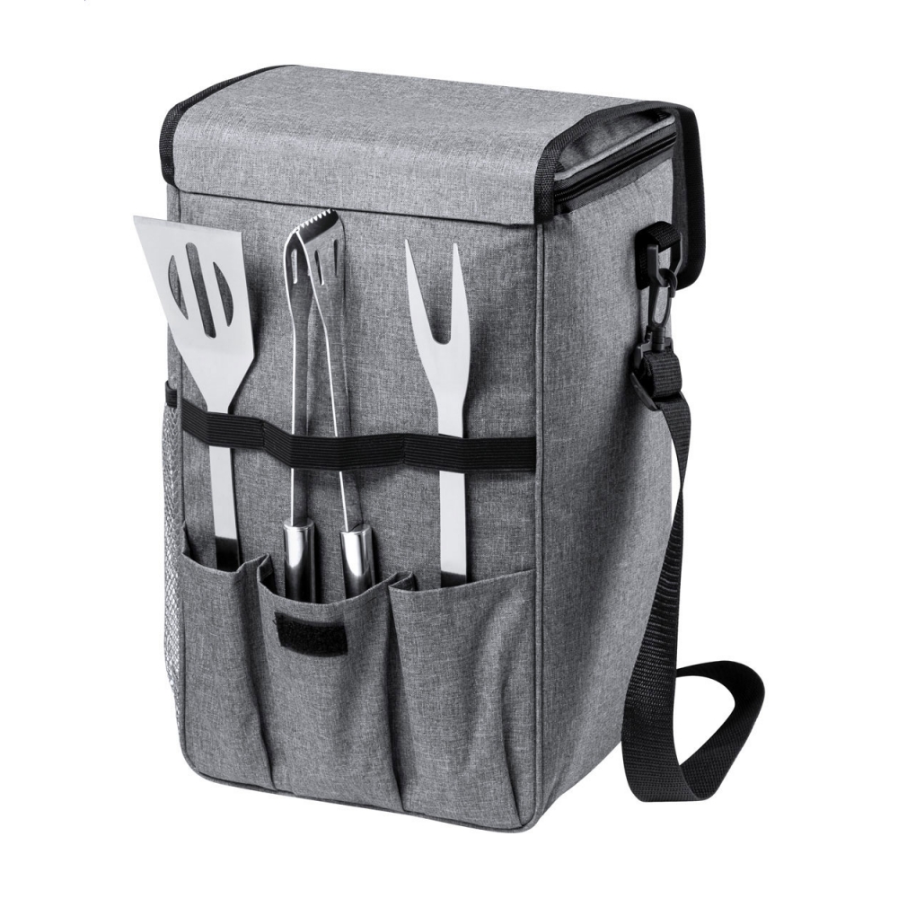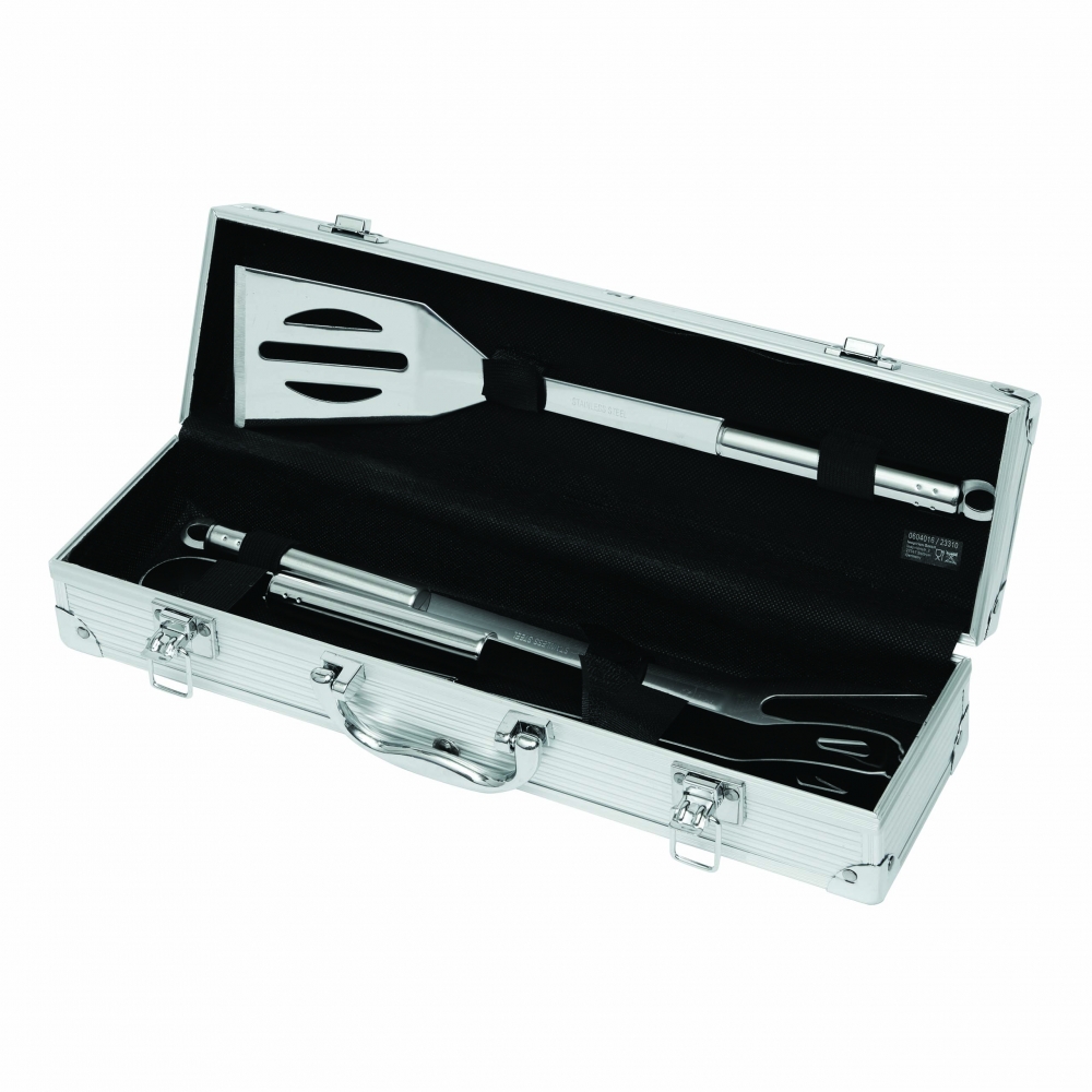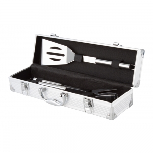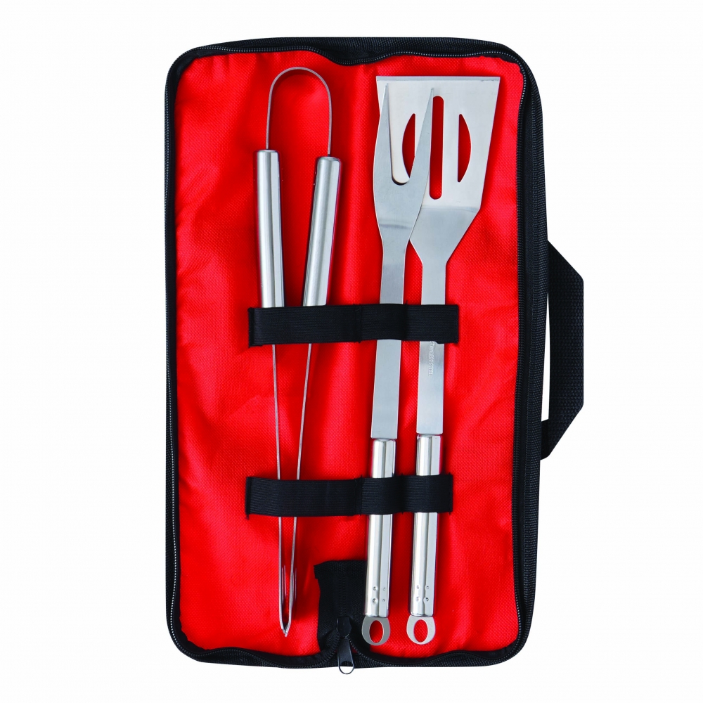 Artikel-Nr: PST93998-103Grill - Set aus Edelstahl 3-teilig bestehend aus einer Grillzange, einer Grillgabel und einem Pfannenwender. Geliefert in einer Tasche aus Non Woven. Tasche: 405 x 120 x 25 mm