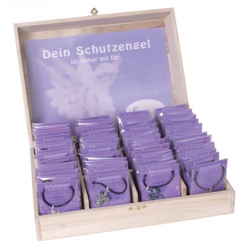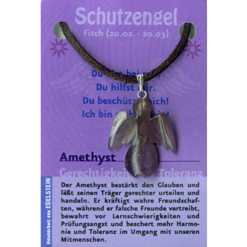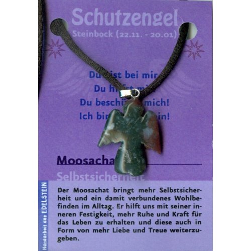 Artikel-Nr: 3751082666 x 12 Schutzengel-Anhänger im dekorativen Holzdisplay: Schutzengel-Anhänger Steinbock, - Wassermann, - Fische, - Widder, - Stier, - Zwillinge, - Krebs, - Löwe, - Jungfrau, - Waage, - Skorpion, - Schütze (siehe Art.-Nr. 108267, 108268, 108269, 108270, 108271, 108272, 108273, 108274, 108275, 108276, 108277, 108278!). Trendige, schutzbringende Halsketten aus Textilkordel und Astro-Glücksstein-Amulett. Auf der Verpackung finden Sie die Charakteristik des jeweiligen Glückssteins.