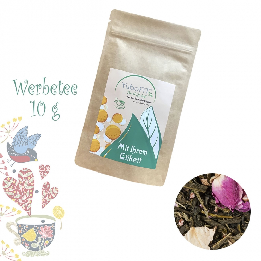 Artikel-Nr: HLSN60102989Tee als Werbegeschenk aus der YuboFiT® Tee Manufaktur. Eine Kräutermischung mit milder Note von Minze und Kamille – wie bestimmt für beschaulich-schöne Abendstunden