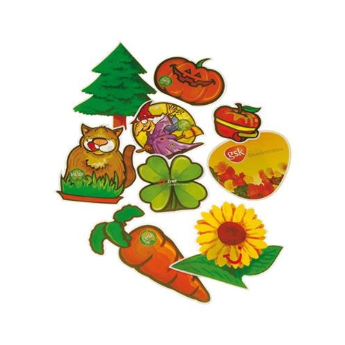 Diese werbewirksamen Präsentverpackungen gibt es standardmäßig als Sonnenblume, Karotte, Radieschen, Glücksklee, Kürbis und Tannenbaum. Jede Verpackung enthält eine Saattüte mit dazu passender Saat. Die Abmessungen sind ca. 20 x 12 cm, je nach Stanzform. Vierfarbiger Werbedruck. Auch andere Formen sind auf Wunsch möglich, z. B. Apfel, Zitrone, Herz etc. (auf Anfrage, die Kosten für das Stanzwerkzeug werden nach Aufwand berechnet.)