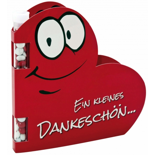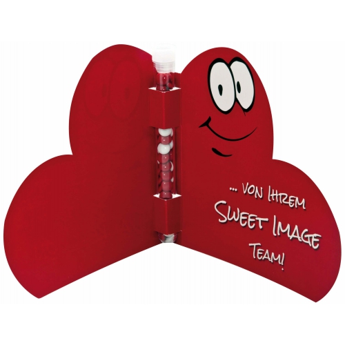 Für ein Dankeschön zum Überreichen dient diese kleine Herzkerze. Das eingebundene Kärtchen bietet Platz für den Werbeaufdruck auf dem Standardmotiv oder eine eigene Gestaltung, jeweils ab 250 Stück.