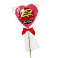 Herzlolly rot in Glanzbeutel mit Schleife aufgebunden ud mit bedrucktem Etikett versehen. Gewicht: ca. 80g Verpackung: Einzeln in Glanzbeutel verpackt und mit Satinschleife aufgebunden.