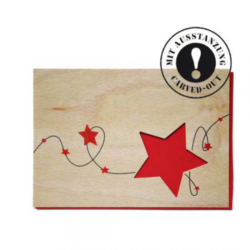 Holzweihnachtskarte 'Sternenkugel weinrot'