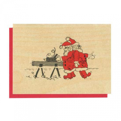 Holzweihnachtskarte 'Nikolaus mit Kreissäge'