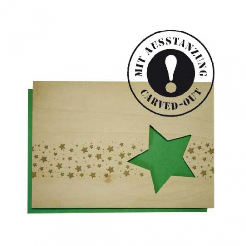 In dieser Weihnachtskarte aus Holz sind die Anhänger (Stern und Glocke) bereits vorgelasert und können ganz einfach rausgedrückt werden. An einem Faden aufgehängt, bilden sie einen schönen Blickfang in jedem Raum. Der Werbedruck erfolgt als Lasergravur auf dem Standardmotiv oder eine eigene Gestaltung der Holzkarte, jeweils ab 250 Stück. Ein Tampondruck auf der Holzkarte ist möglich. Ein Kuvert ist separat erhältlich Art. 6101 oder 6104.