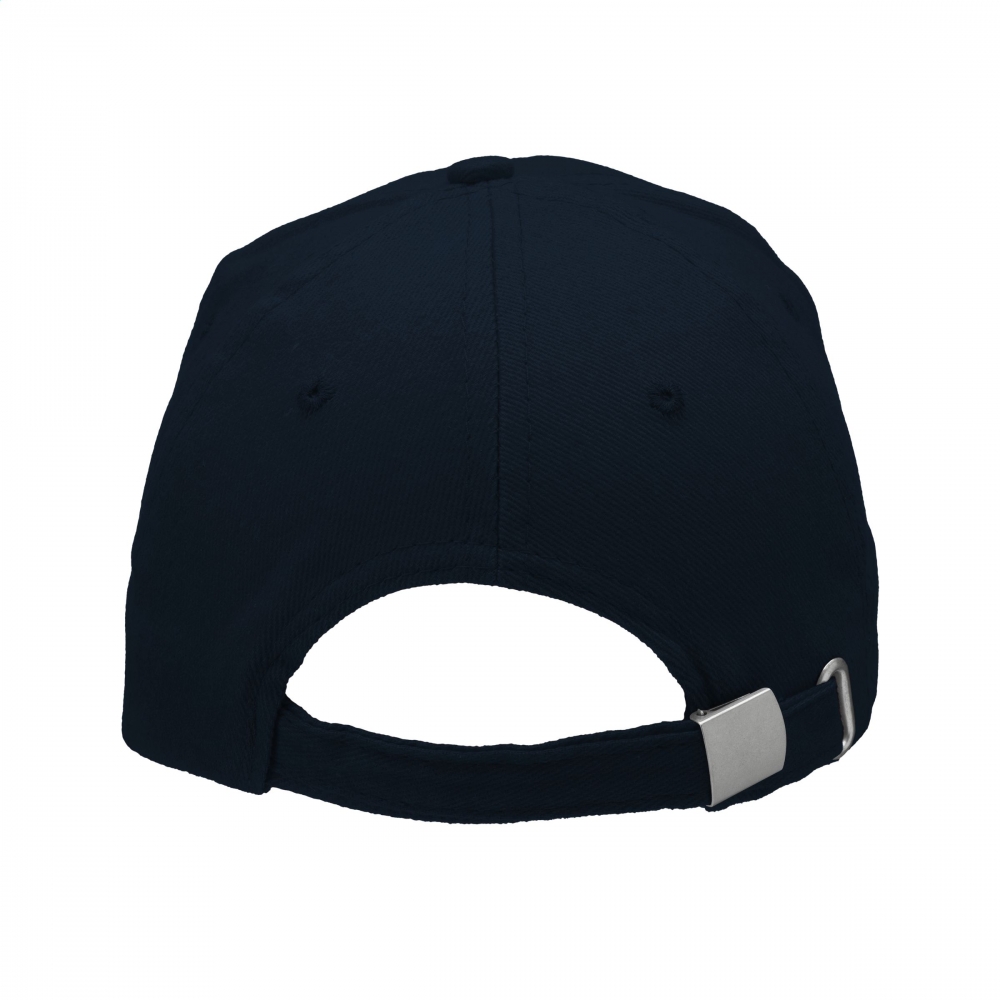 6-Panel-Kappe aus strapazierfähiger, gebürsteter Baumwolle mit 250 g / m². Mit Sandwich-Visier, gestickten Belüftungslöchern und Metallschnallenverschluss.