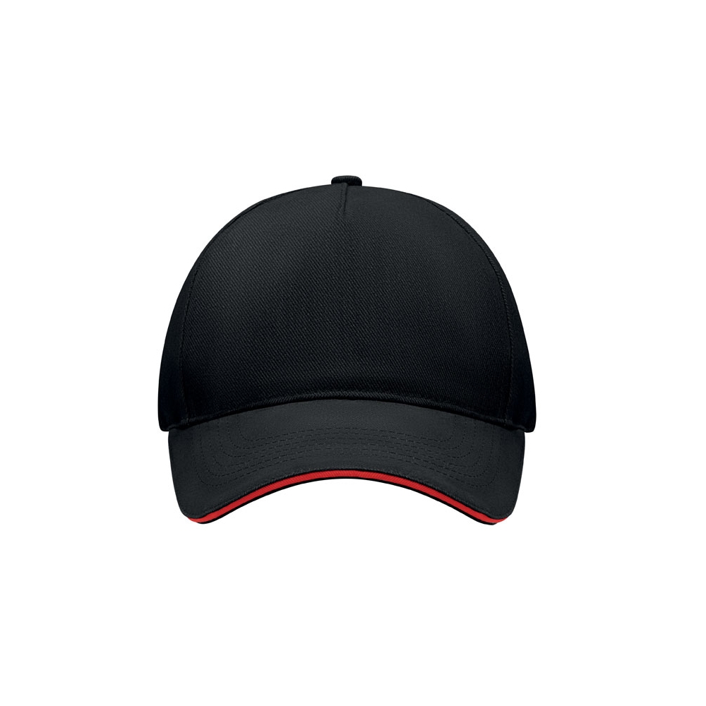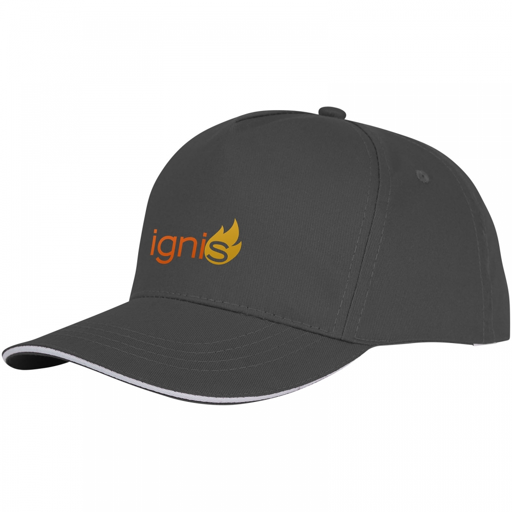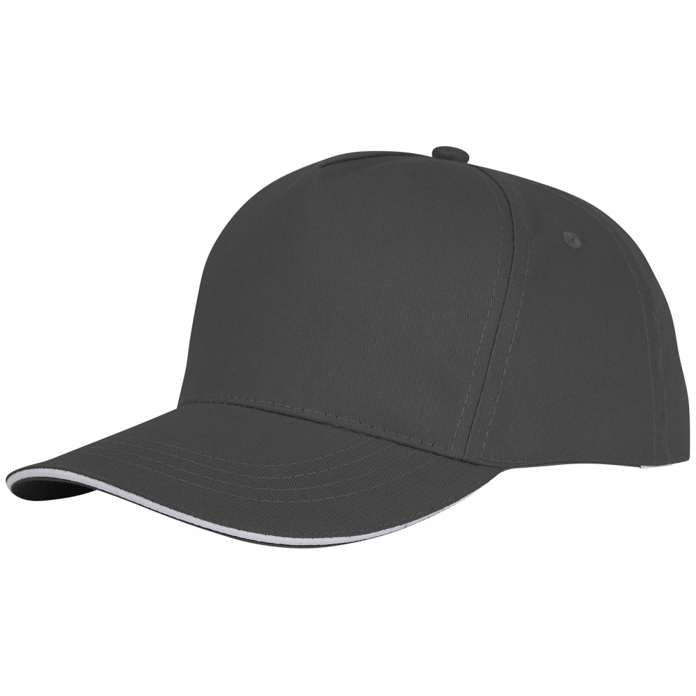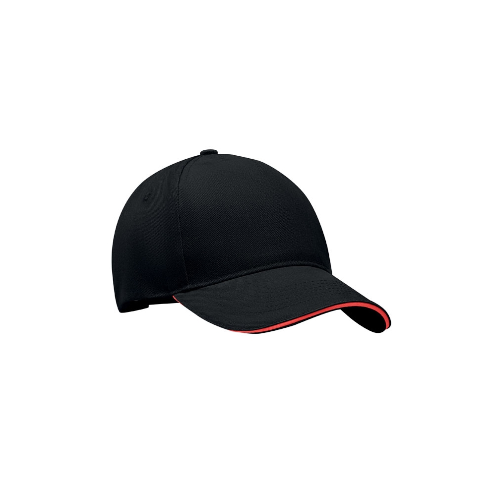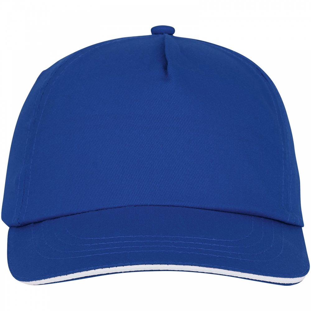 5-Panel-Mütze aus gebürsteter Baumwolle, 250g / m2. In einer Reihe von leuchtenden Farben, mit farbigem Sandwich und gepolstertem Visier. Aufgestickte Belüftungslöcher und verstellbarer Schnallenverschluss.