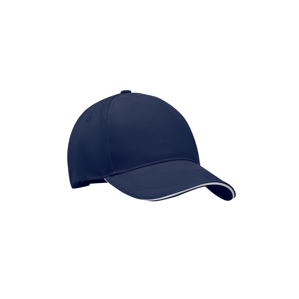 5-Panel-Kappe aus Bio-Baumwolle mit weichem Finish. Mit verstellbarem Schnallenverschluss und gestickten Belüftungslöchern. Erhältlich in verschiedenen Farben, mit Bio-Baumwolle-Logo.