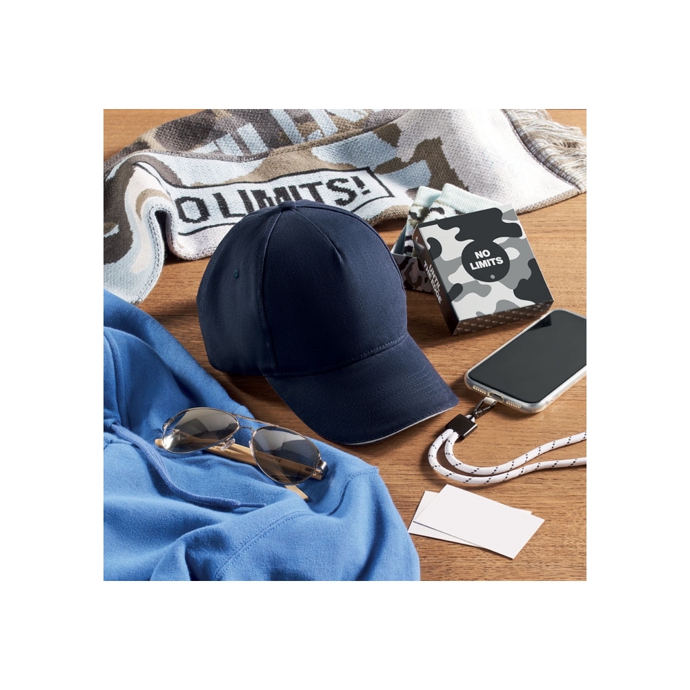 Baseball Kappe aus Baumwolle 220g / m². 5 Panels. 5 LED Leuchten im Kappenschirm. Schnalle aus Metall. Inkl. USB-Ladekabel.