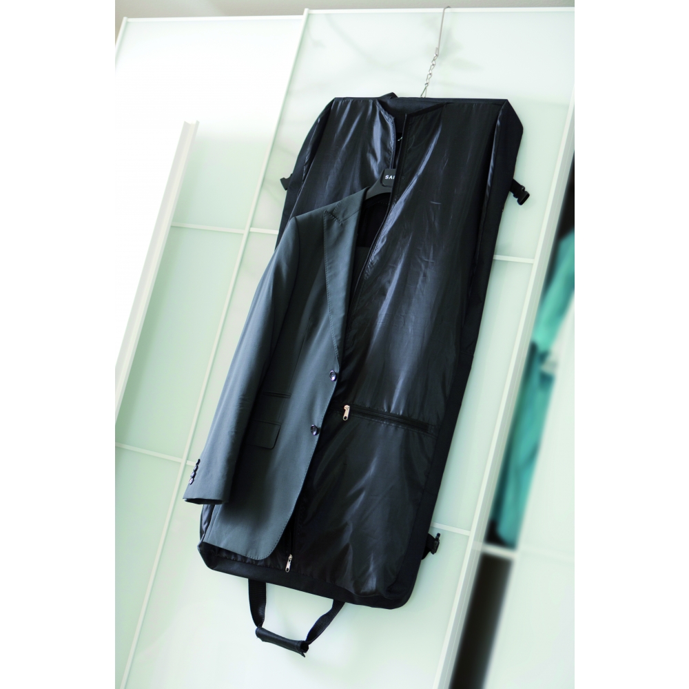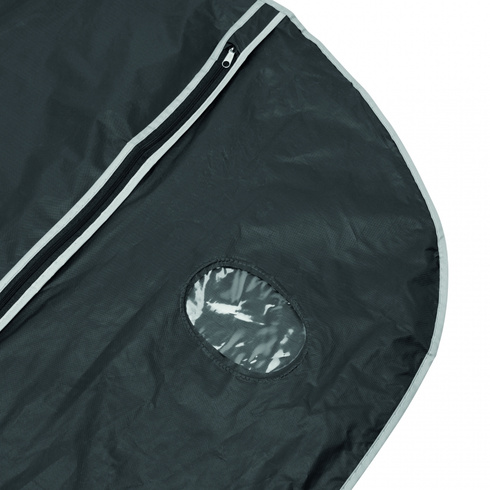Großer strapazierfähiger Kleidersack aus Non Woven mit Tragegriff und Reißverschluss. Oben mit Öffnung für den Kleiderbügel. Ihre Werbung drucken wir auf die Vorderseite.