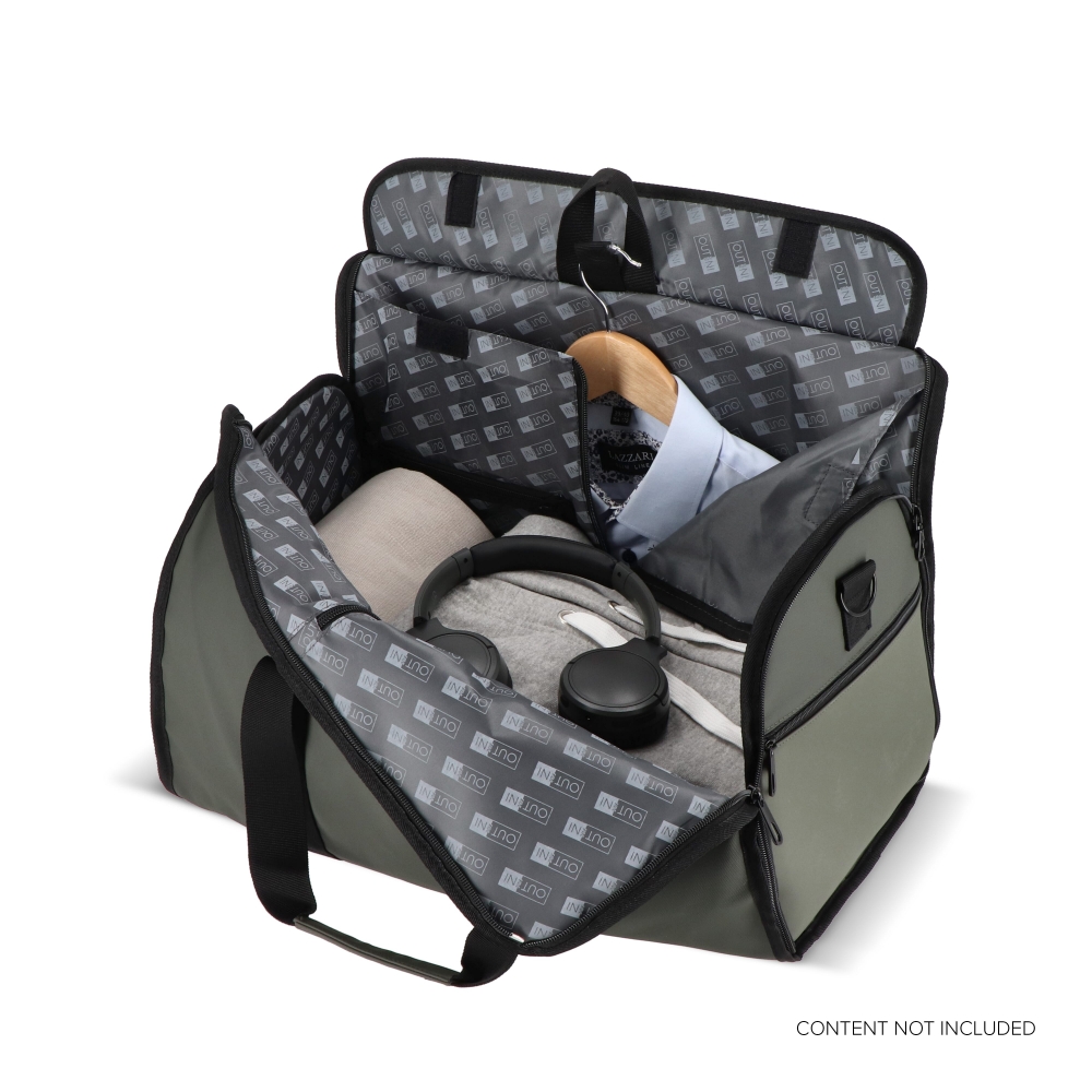 Die InSideOut Carry Smart ist eine stilvolle, funktionale Reisetasche mit integriertem Kleidersack, viel Stauraum, Schuhbeutel und Schultergurt – ideal für Geschäfts- oder Urlaubsreisen.