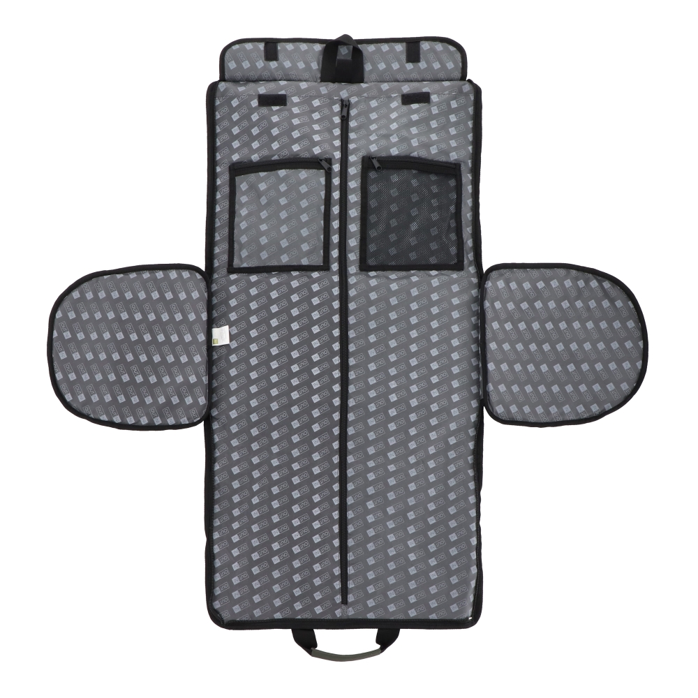 Kleidersack SMOKING für unterwegs: stabiler Metall-Aufhängehaken mit extra Klettverschlussfach, 2 Tragegriffe mit Klettverschluss-Verstärkung, 2 seitliche Kompressionsverschlüsse, 2 Reißverschluss-Vortaschen, innen 1 Reißverschluss-Fach und 2 kleine Reißverschluss-Fächer, verstell- und abnehmbarer Gurt mit Schulterpolster