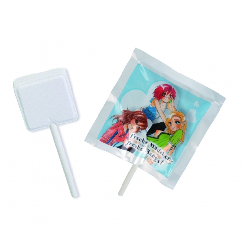 Artikel-Nr: 4283414-4-t1 Lutscher, ca. 5 g in transparenter Folie verpackt, rundum bedruckt. In verschiedenen Geschmacksrichtungen erhältlich. Haltbarkeit: 18 Monate, Lieferzeit: ca. 4 Wochen, Preise inkl. 4-farbigen Druck, zzgl. Drucknebenkosten