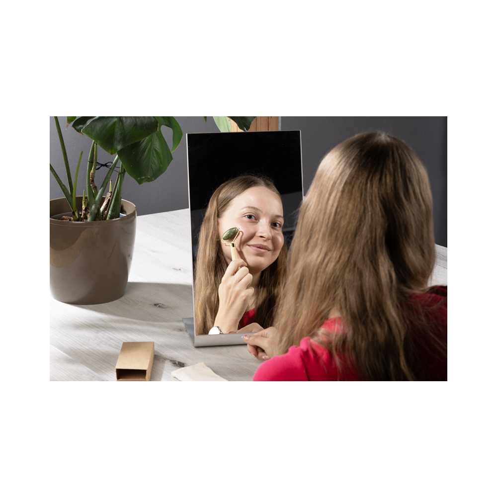 Der BELLEZA Roller ist ein jadeitischer Massagegerät mit einem Holzgriff, ideal für die tägliche Gesichtspflege. Er hilft, die Durchblutung zu verbessern, Schwellungen zu reduzieren und die Haut zu glätten, wodurch sie gesund und strahlend aussieht. Dank des natürlichen Jadesteins hat der Roller eine beruhigende und entspannende Wirkung. Das elegante Design macht BELLEZA zu einer ausgezeichneten Wahl für ein Geschenk oder Werbeartikel, der sich ideal personalisieren lässt.