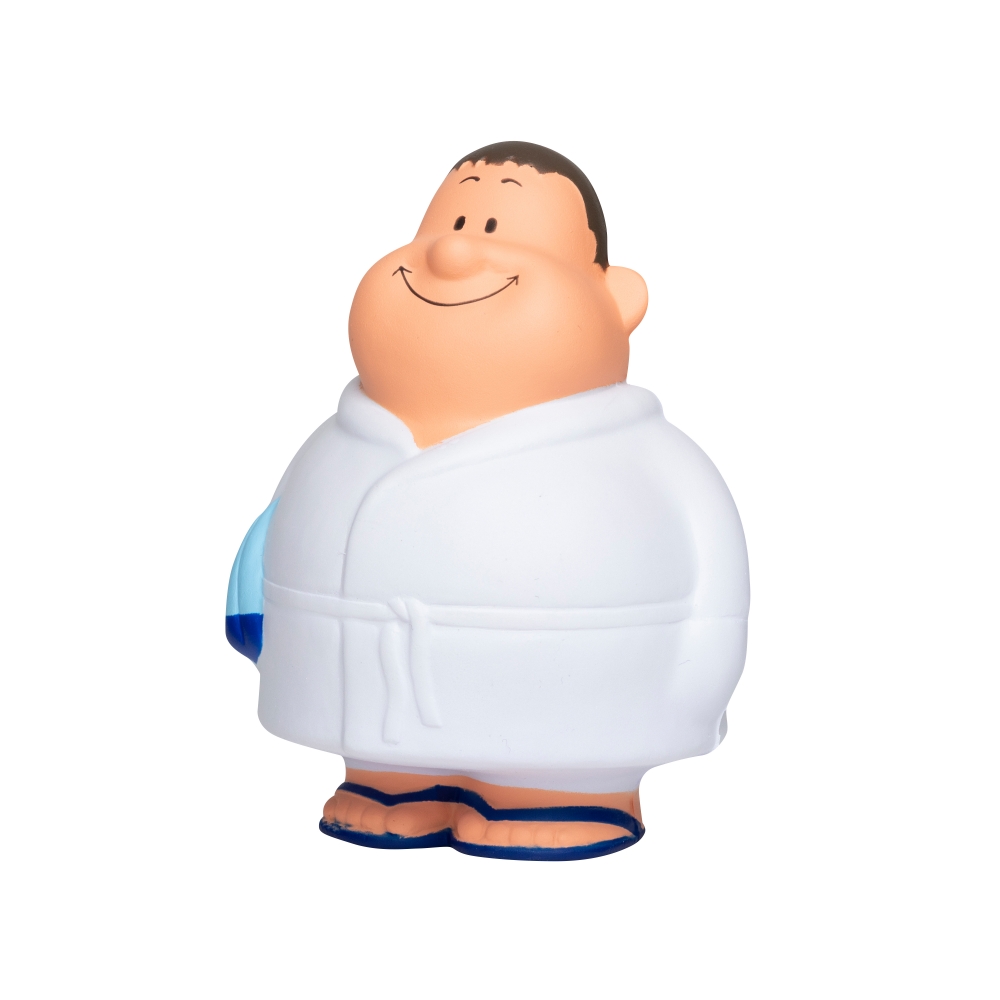 SQUEEZIES® Wellness Bert® ist die Personifikation von Entspannung: Nach einem Saunagang und einer Massage sieht die Welt gleich ganz anders aus - und das ist erst der Anfang aller Erholung. Im weißen Bademantel und dem blauen Handtuch unter seinem Arm, ist Bert® bereit für noch mehr Wellness Behandlungen. Damit auch Sie so richtig schön entspannt sind, einfach "zusammenknautschen". Durch die Materialbeschaffenheit nimmt das Produkt die Ursprungsform wieder ein.