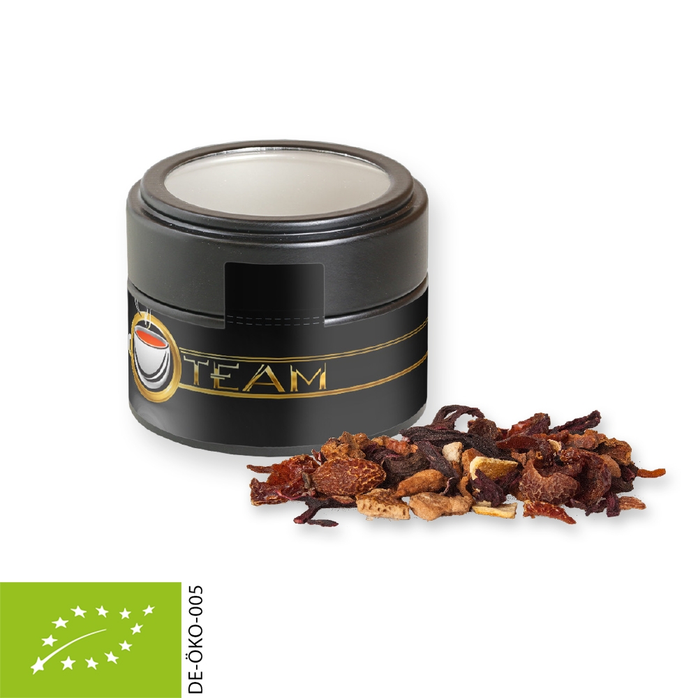 Beuteltee Bratapfel, ca. 2,5g, Werbekarte A6 gefaltet