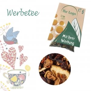 Artikel-Nr: FNM01435Werbekarte A6 gefaltet aus Papier. Werbeanbringung als Direktdruck in 4c individuell bedruckbar. Zutaten Beuteltee Bratapfel: Äpfel (48%), Hagebutten, Zimt (13%), Aroma (Bratapfel) (9%), Orangenschalen, Steviablätter, Säuerungsmittel: Citronensäure.