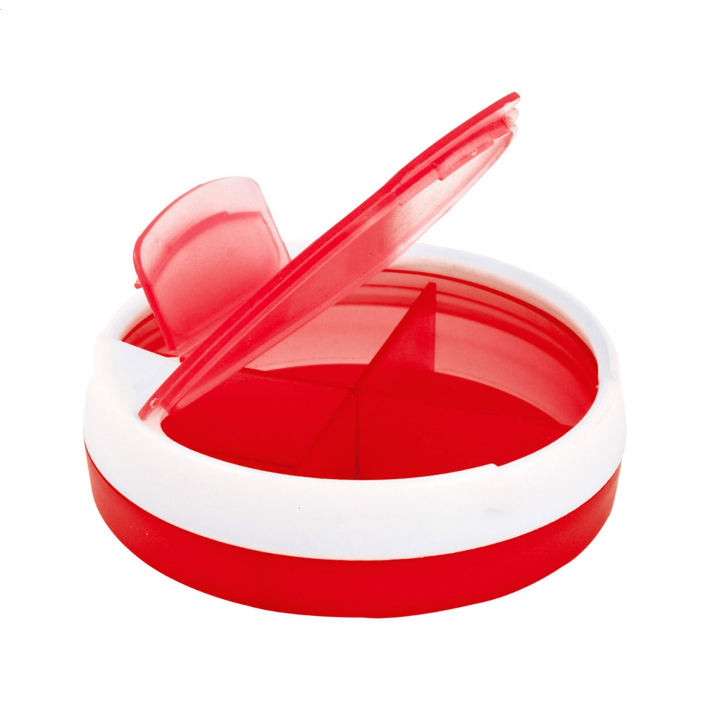Tablettendose mit mehreren Fächern und zusätzlichen kleineren Dosen.