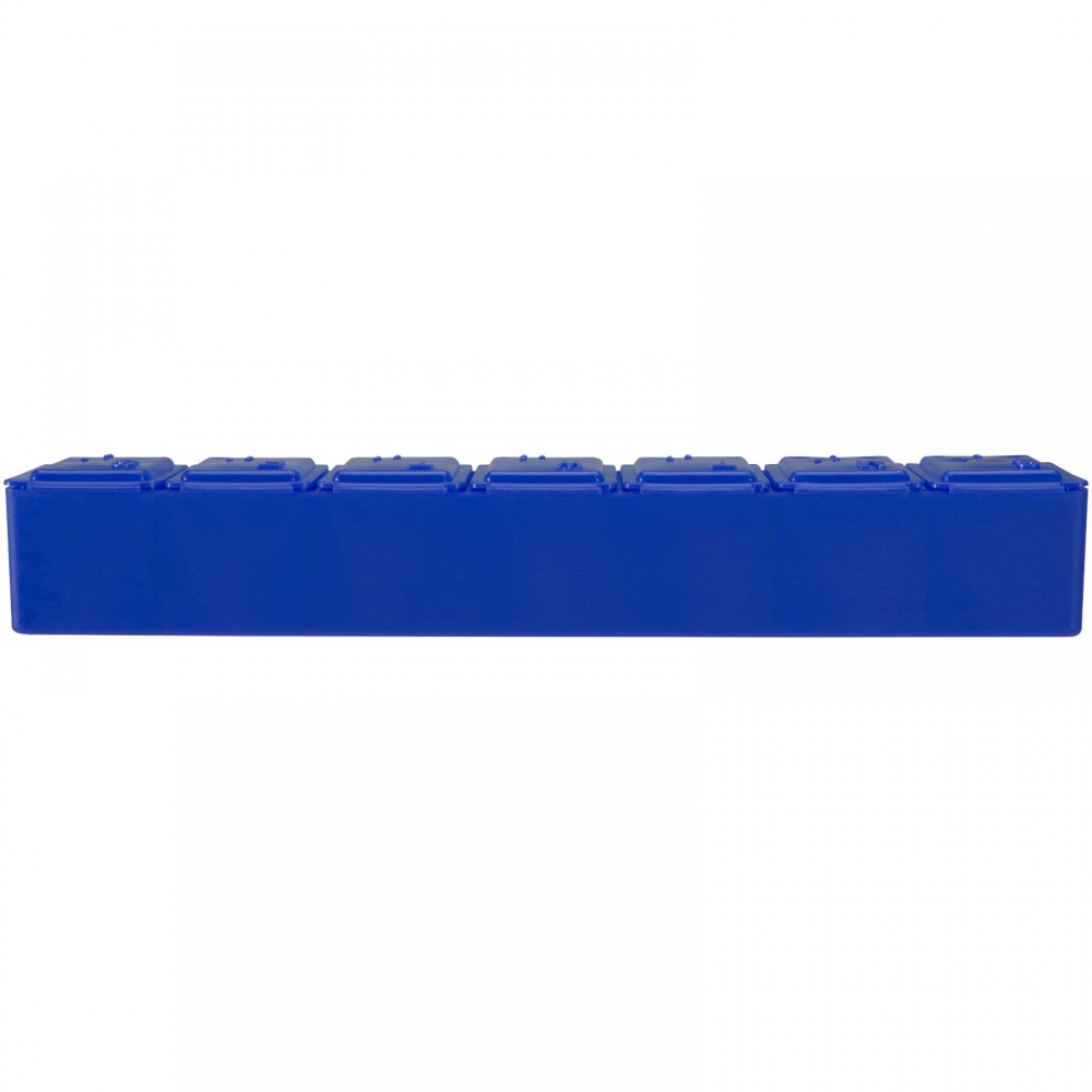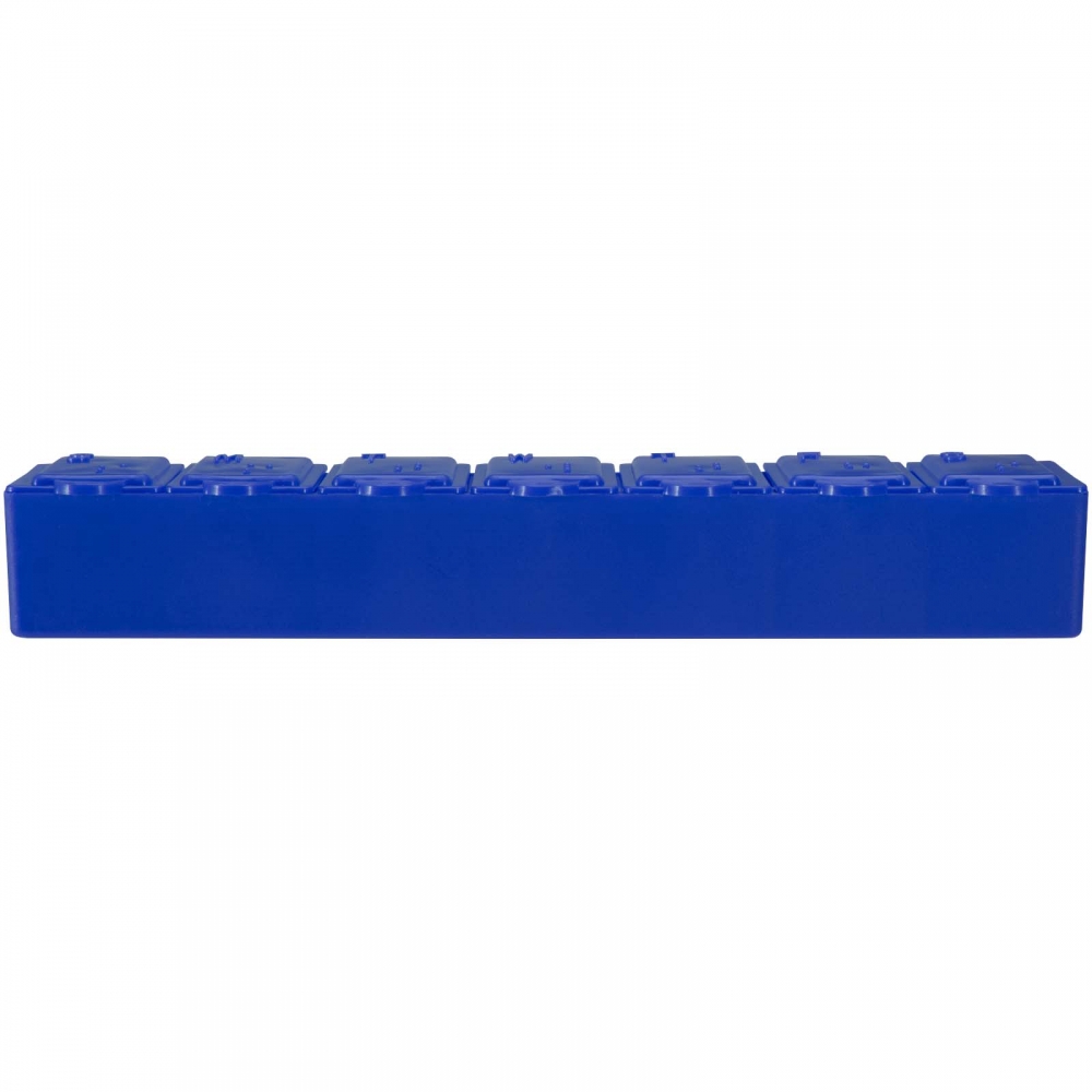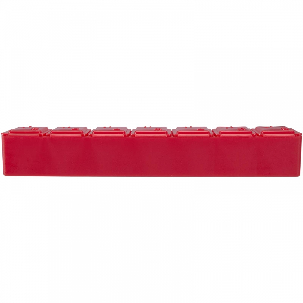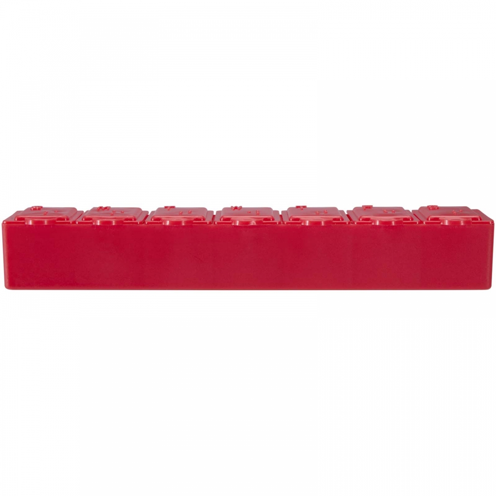Pillendose aus robustem, halbtransparentem Material in lebendigen Farben mit einem Fach für jeden Wochentag. Mit 7 einzelnen Fächern mit Sicherheitsverschluss.