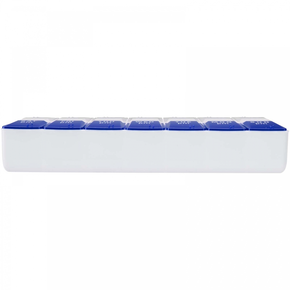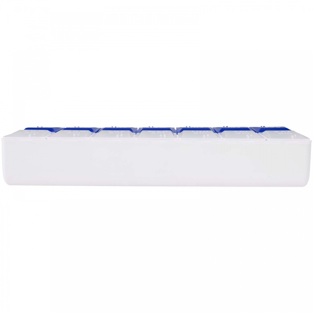 Wöchentlicher Pillenbehälter aus robustem PP. Enthält 7 Einzelbehälter, jeder mit einer entsprechenden Farbe und den Abkürzungen der Wochentage, was die Verwendung erleichtert. Jedes Fach ist in 2 unabhängige Fächer unterteilt, ideal zur Trennung der Morgen-, Nachmittag- oder Abenddosen.