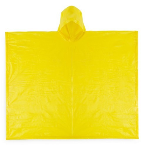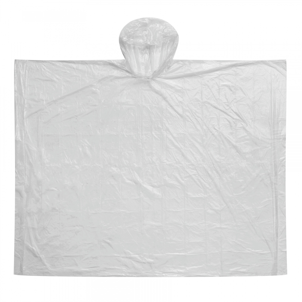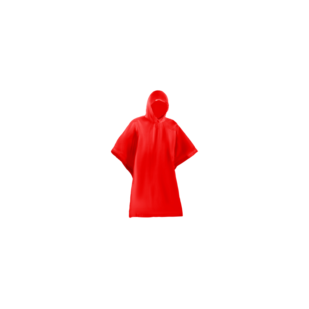 Poncho aus hitzeversiegeltem HDPE in kräftigen Farben. Präsentiert in einer individuellen transparenten Tasche. Einheitsgröße für Erwachsene mit den Maßen 127 x 102 cm.
