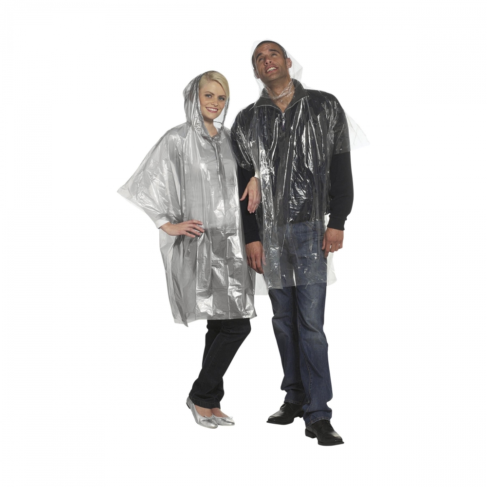 Schneller Schutz vor Regen! Transparenter Regenponcho, Universalgröße. Ein Topartikel für alle Openair-Veranstaltungen. Ihre Werbung erfolgt mittels eines Aufklebers (CMYK) auf der Hülle des Ponchos.
