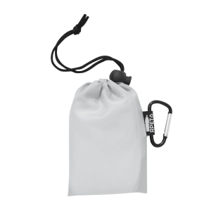 Regenponcho ECO SAFE: mit Kapuze, in Universalgröße, im RPET-Beutel mit Zuziehband und Karabiner (der Karabiner ist NICHT als Sicherung beim Klettern geeignet)