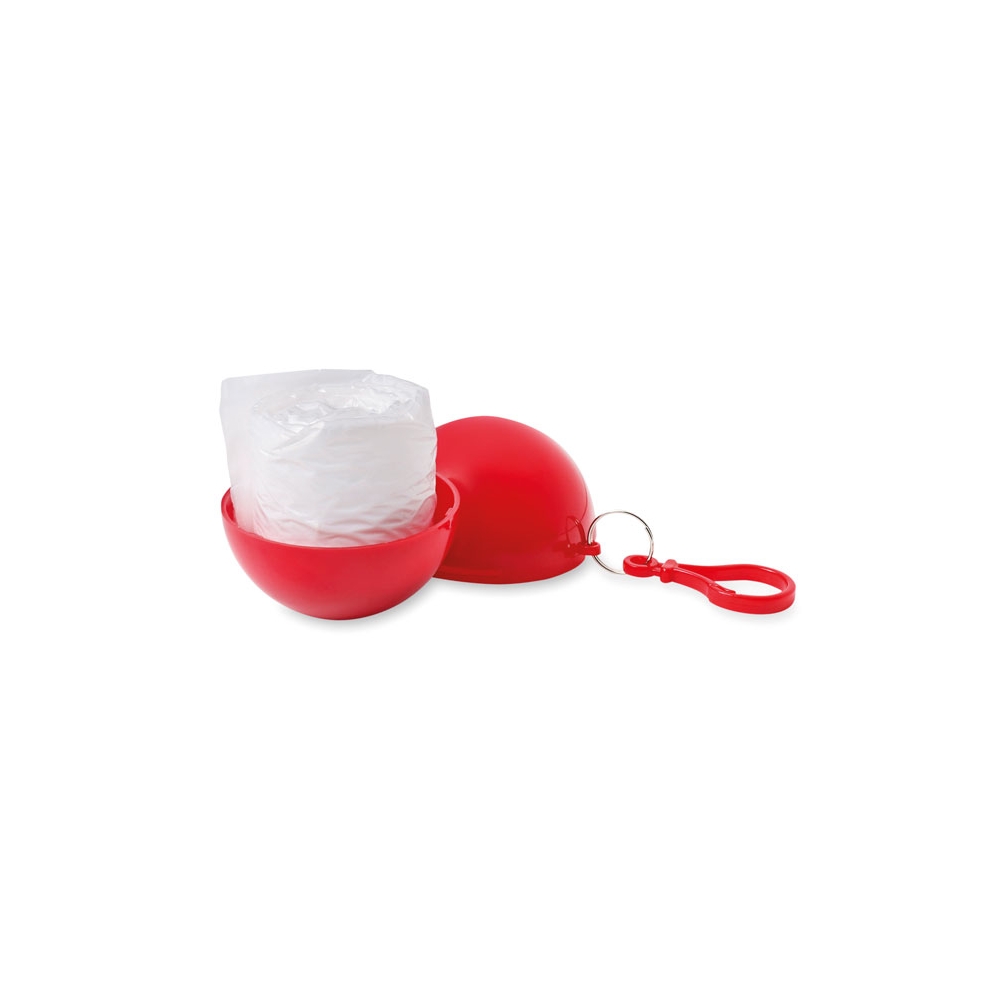 Poncho transparent, verpackt in ABS-Kunststoff-Kugel mit Kunststoff-Karabinerhaken.